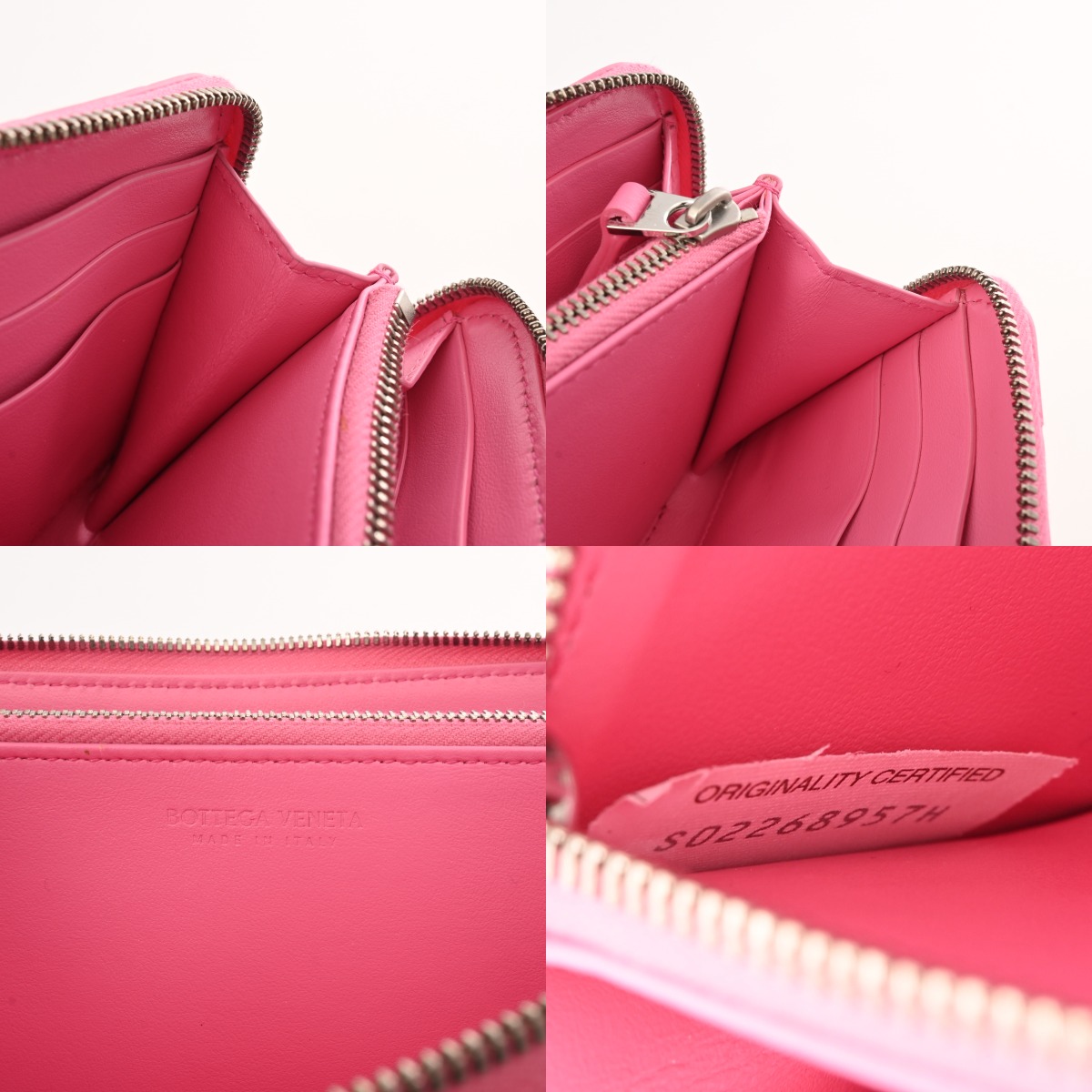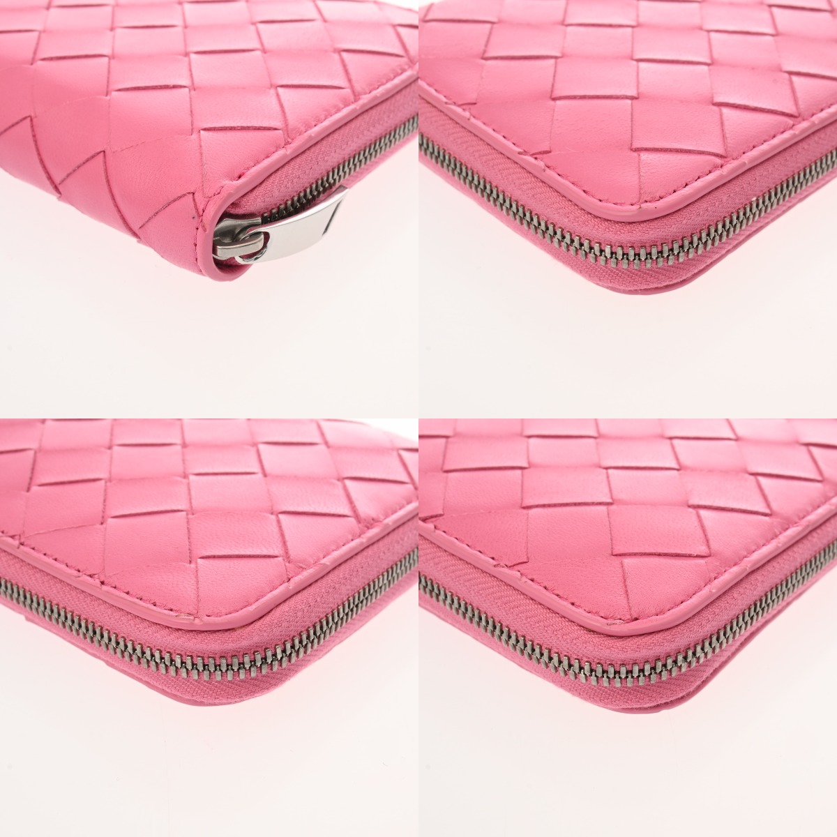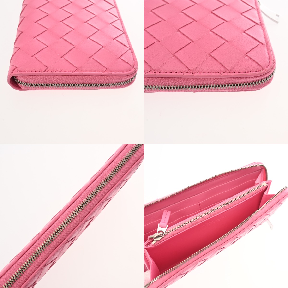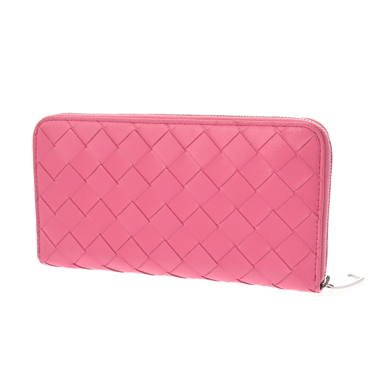 ボッテガ ヴェネタ イントレチャート ジップアラウンドウォレット ピンク レザー ユニセックス 財布 【中古】【purse】