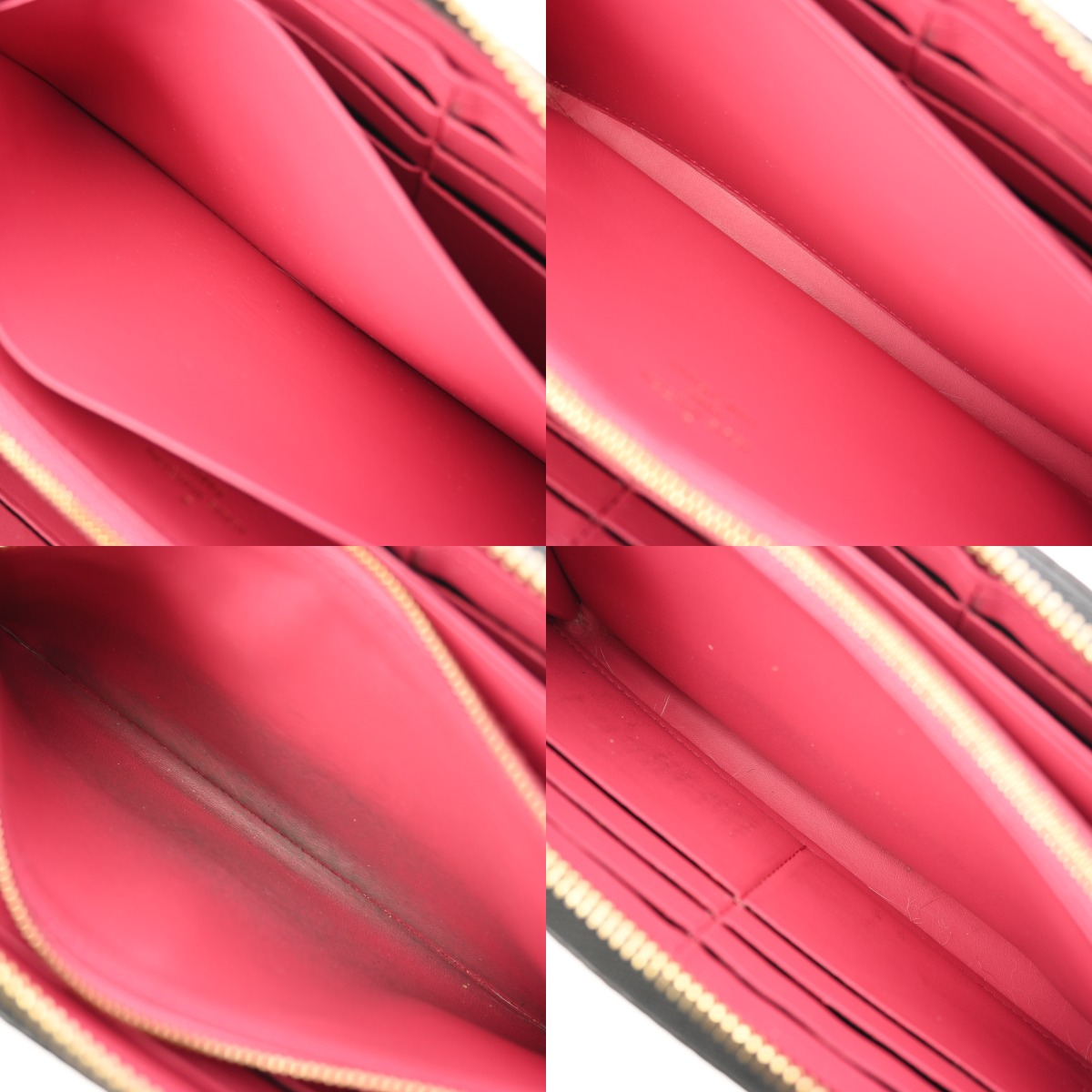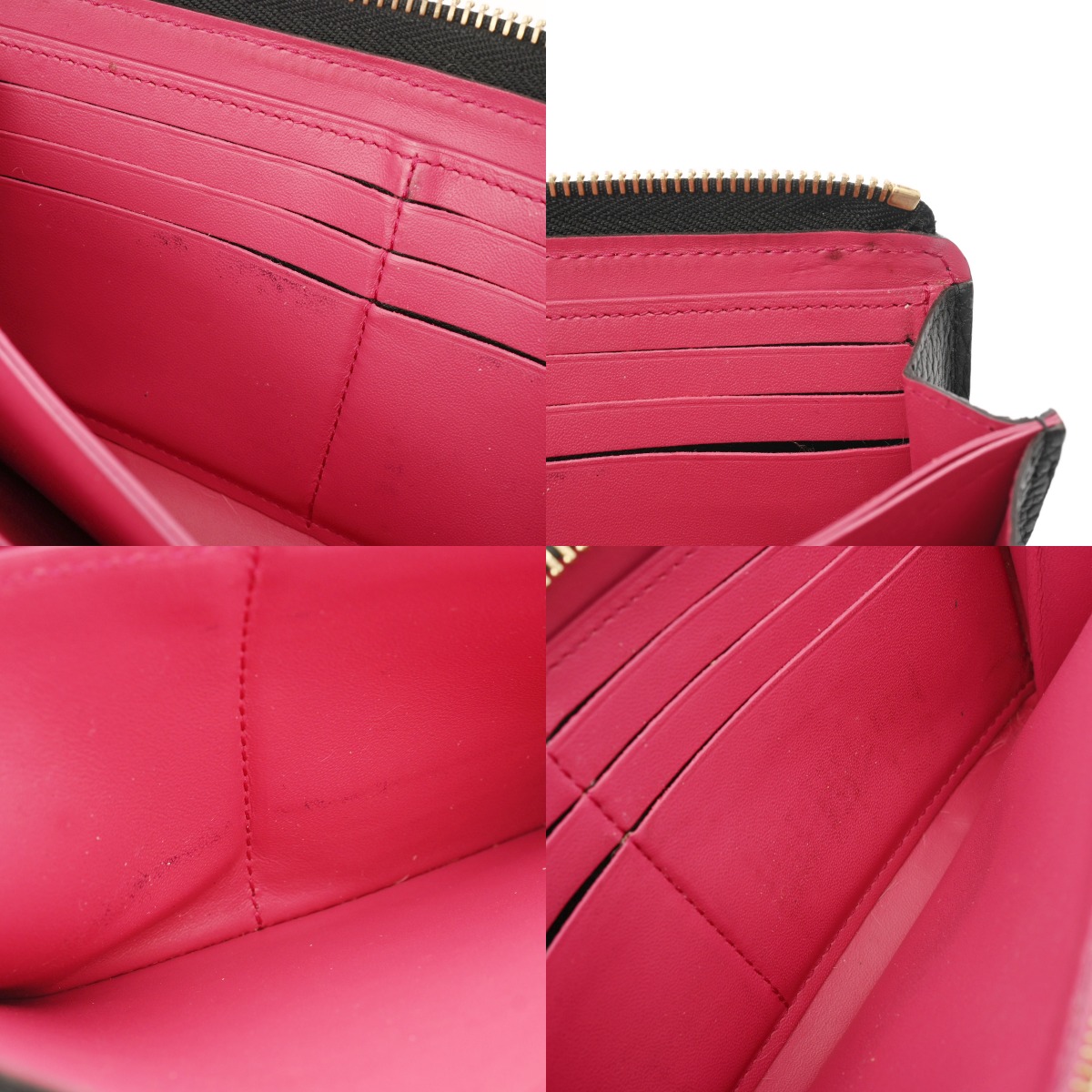 - 薄汚れ、スレ、カード収納跡、ヨレ、小銭入れに黒ずみなど強いダメージ、金具にスリキズなど使用感がございます。