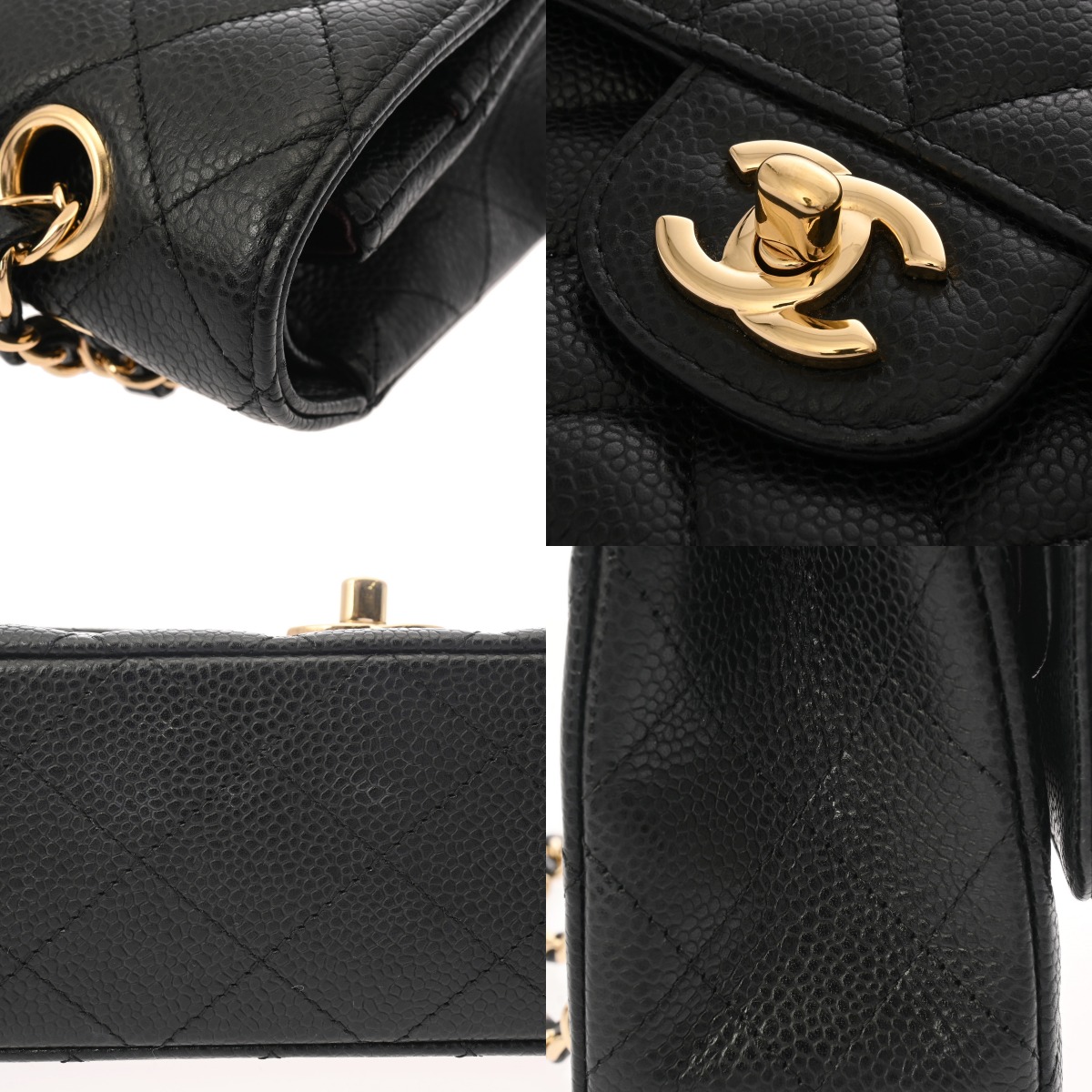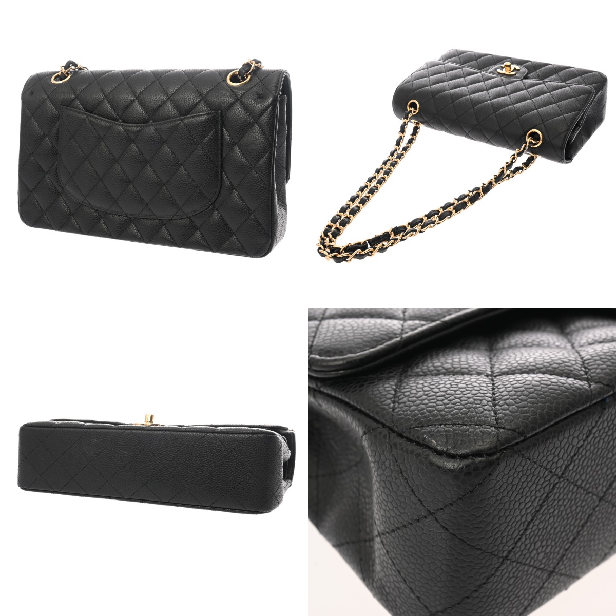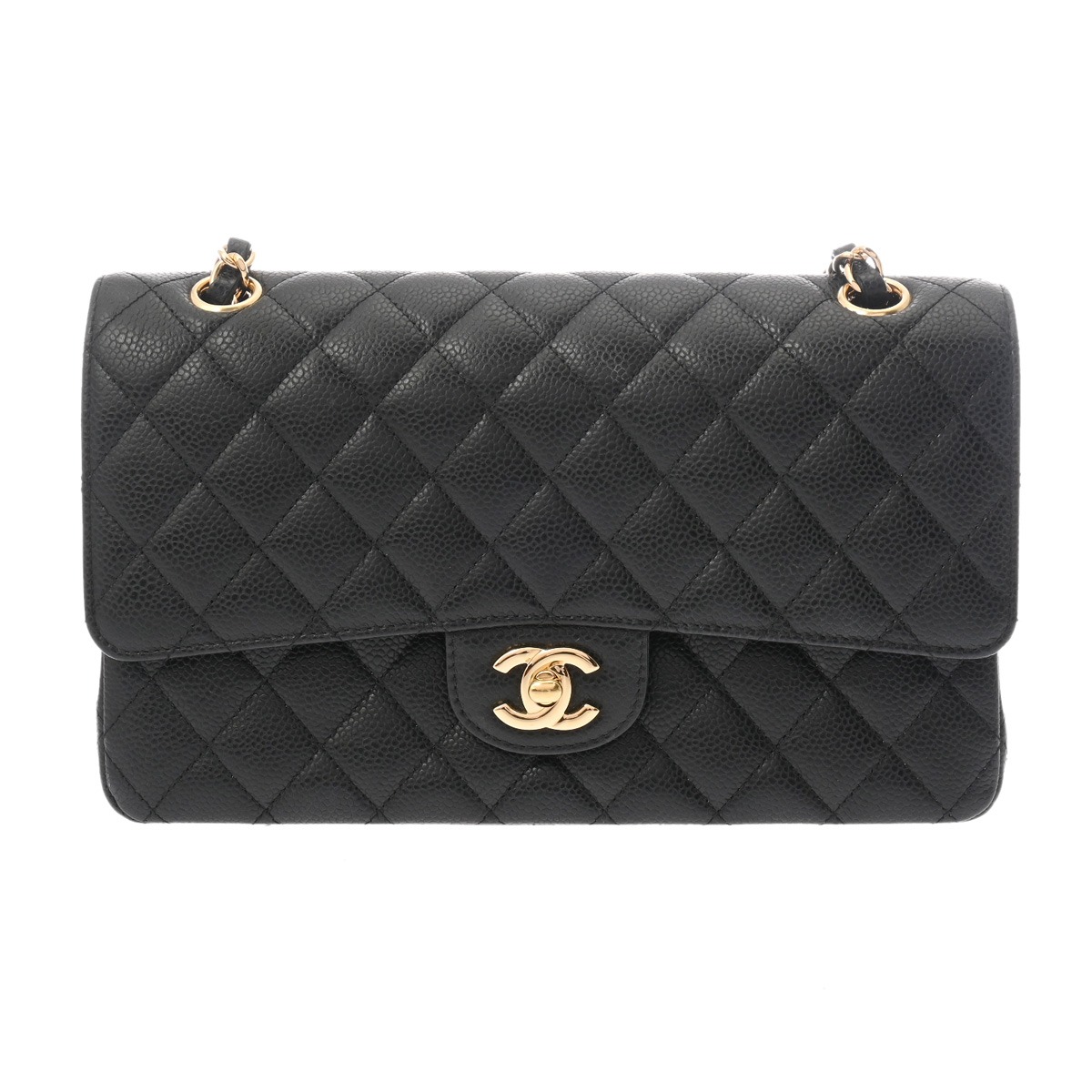 シャネル マトラッセ Wフラップ Wチェーンショルダー 25cm ブラック A01112 キャビアスキン レディース バッグ 【中古】【bag】