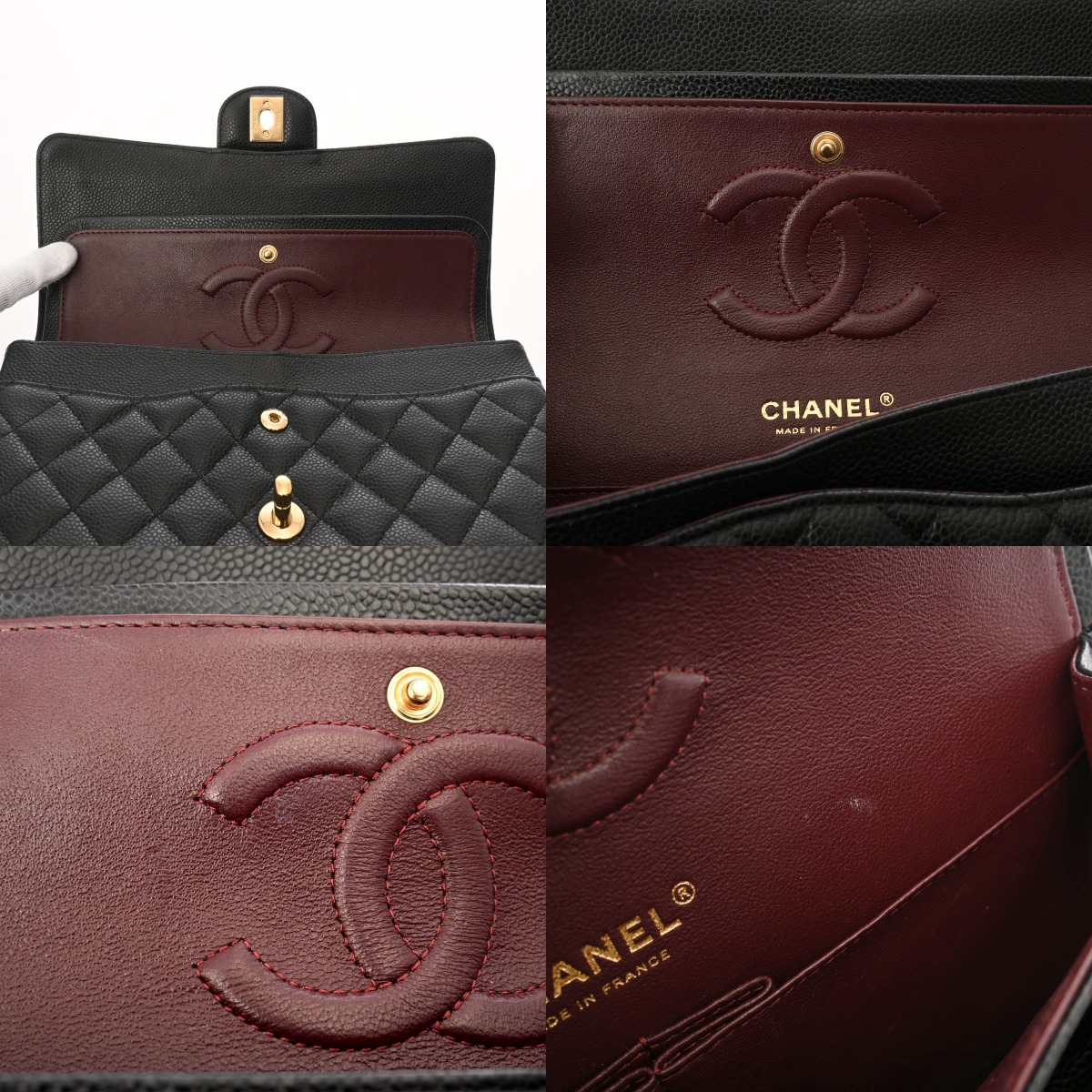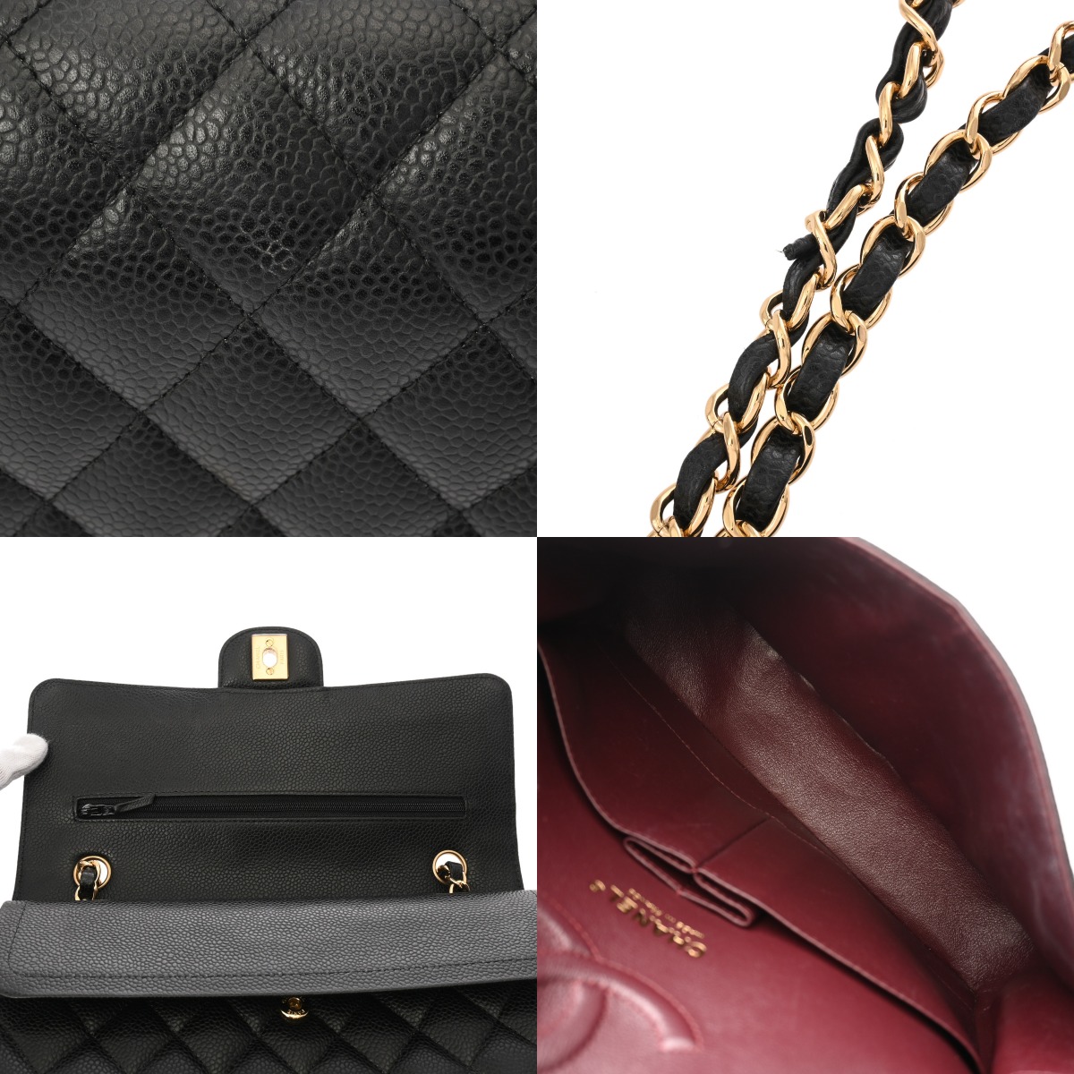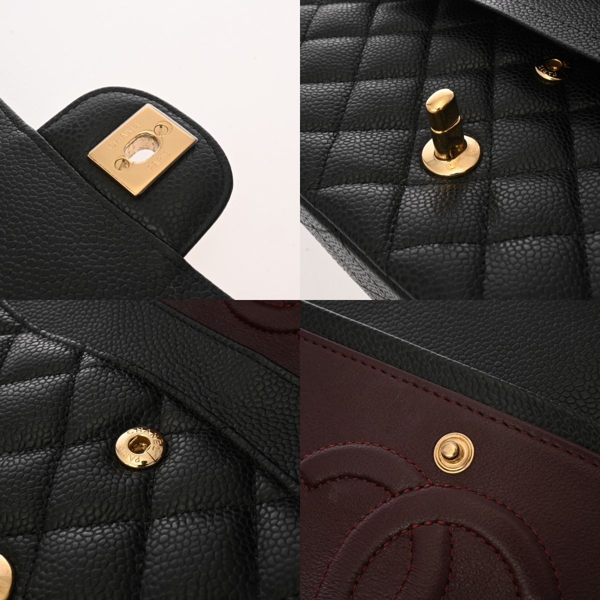 シャネル マトラッセ Wフラップ Wチェーンショルダー 25cm ブラック A01112 キャビアスキン レディース バッグ 【中古】【bag】