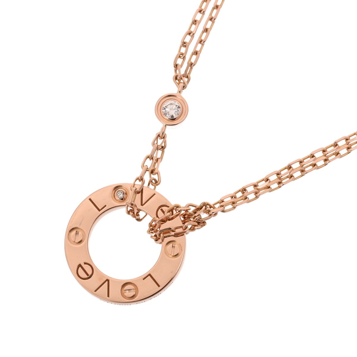 カルティエ ラブサークル ネックレス 2Pダイヤ ゴールド K18ピンクゴールド PG レディース ジュエリー 【中古】【jewelry】