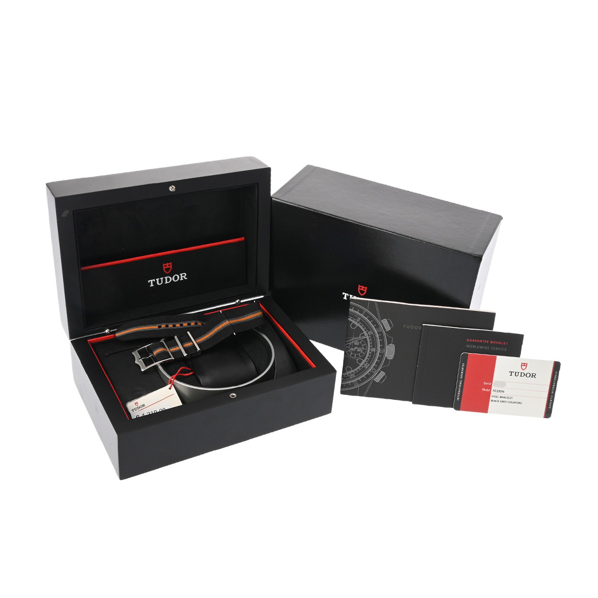 - メーカー保証書( 2018年6月海外購入) / 替えベルト( ブラック・グレー・オレンジ/ファブリック) / メーカー箱(ダメージ)/冊子/タグ