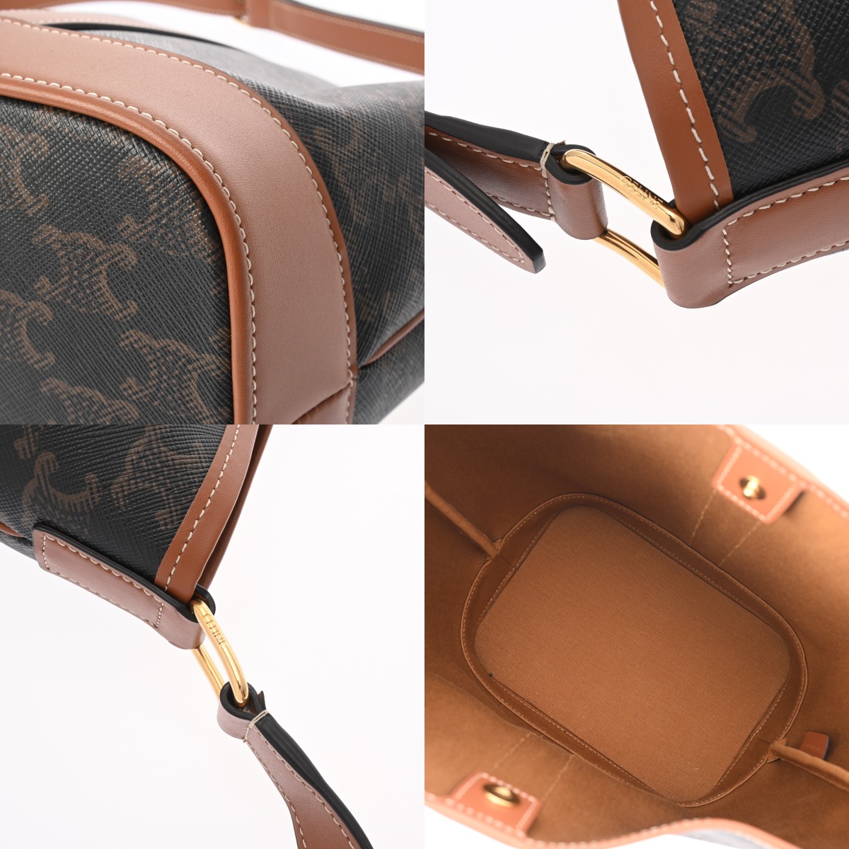 セリーヌ スモールバケット タン 191442CAS 04LU トリオンフ キャンバス/カーフ レディース バッグ 【中古】【bag】