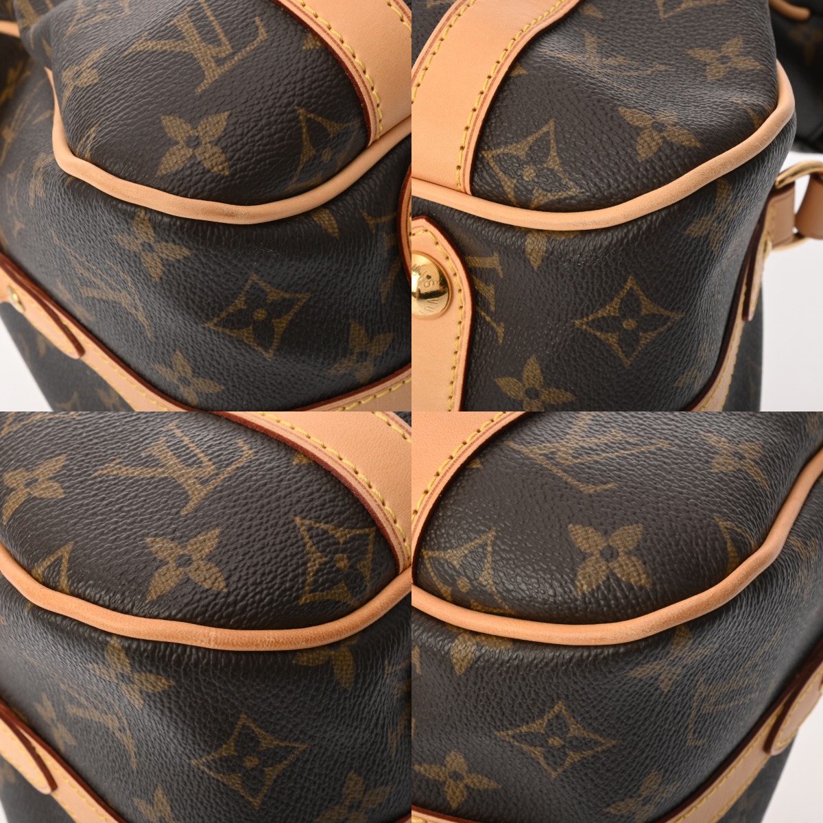 - つぶれや型崩れ、薄汚れ、テカリ、ヌメ革にヤケやシワ、スレ、金具にスレキズなど、少々使用感がございます。