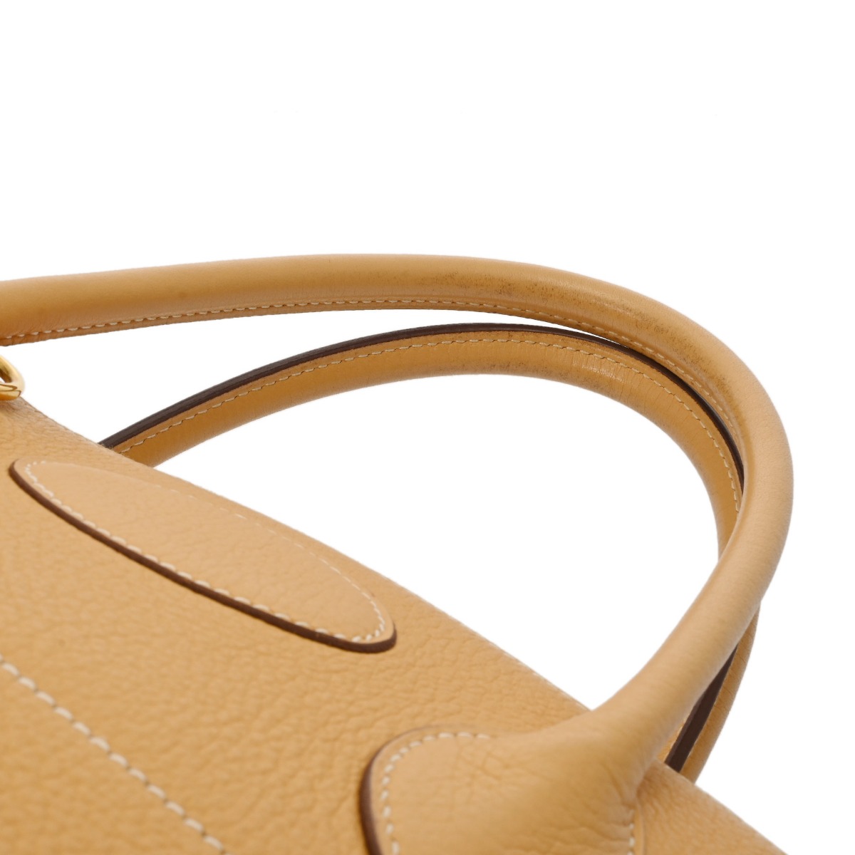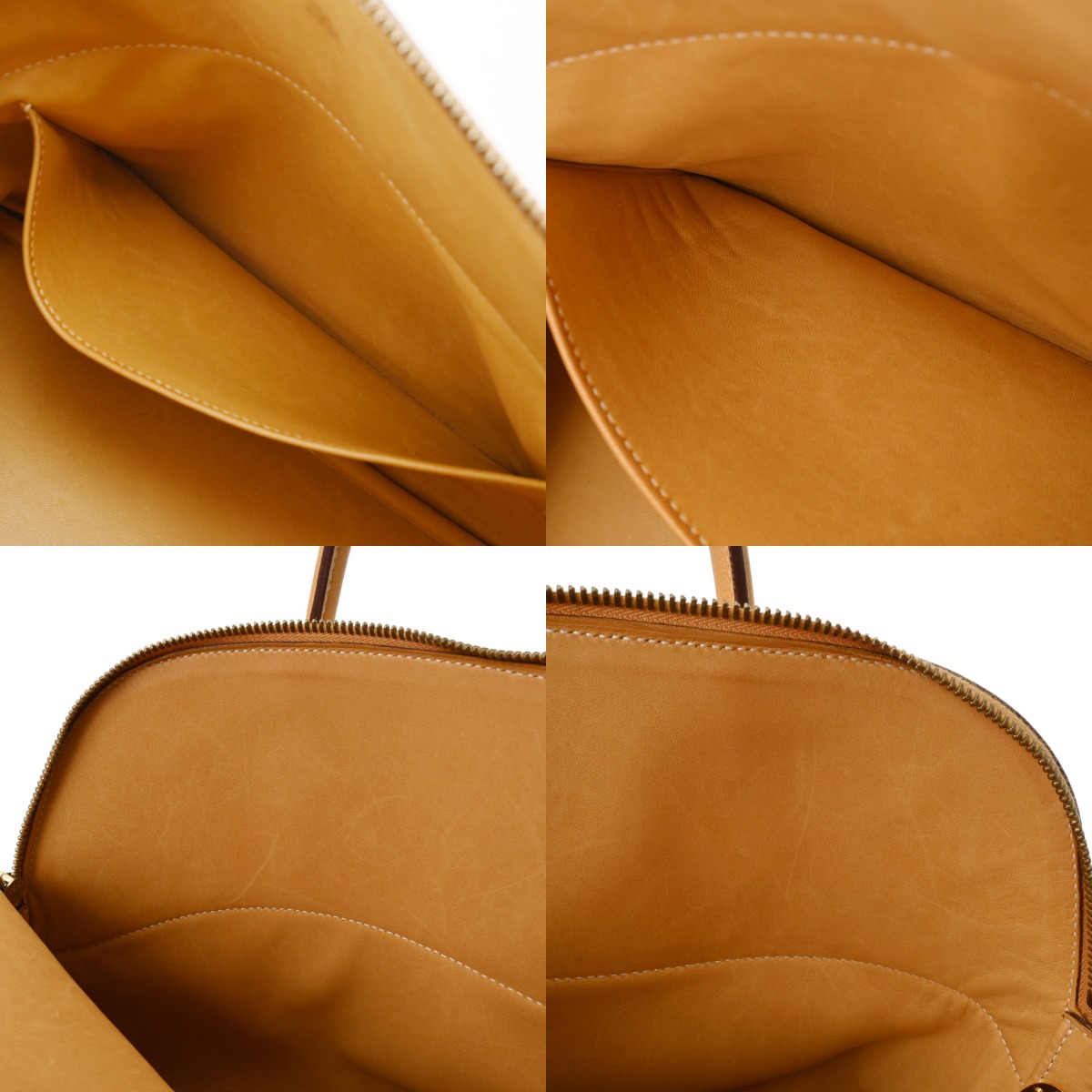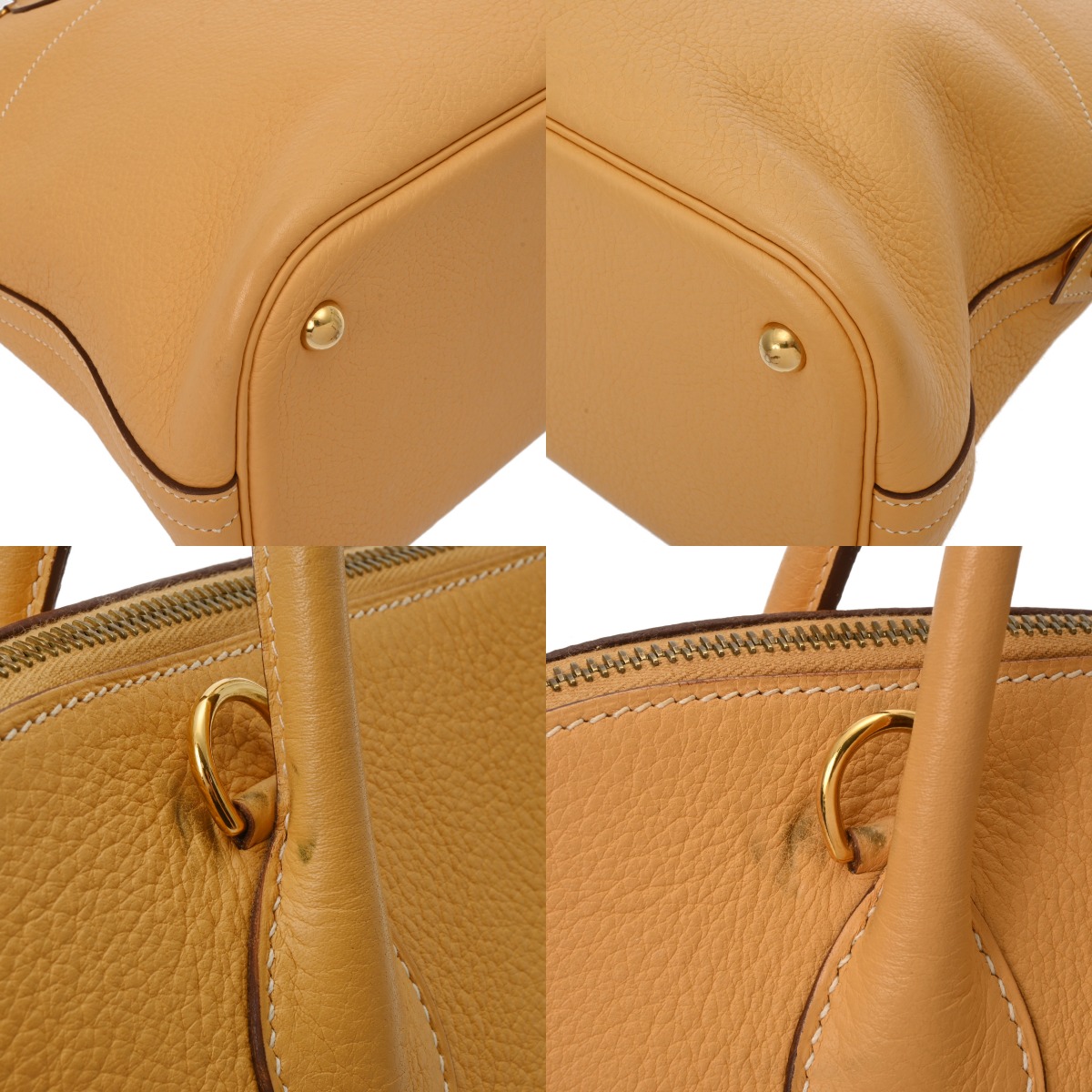 - つぶれ、シワ、黒ずみなど薄汚れ、角スレ、ショルダーに若干クセ、金具にくすみ、スリキズなど少々使用感がございます。
