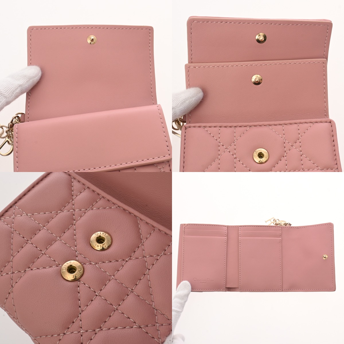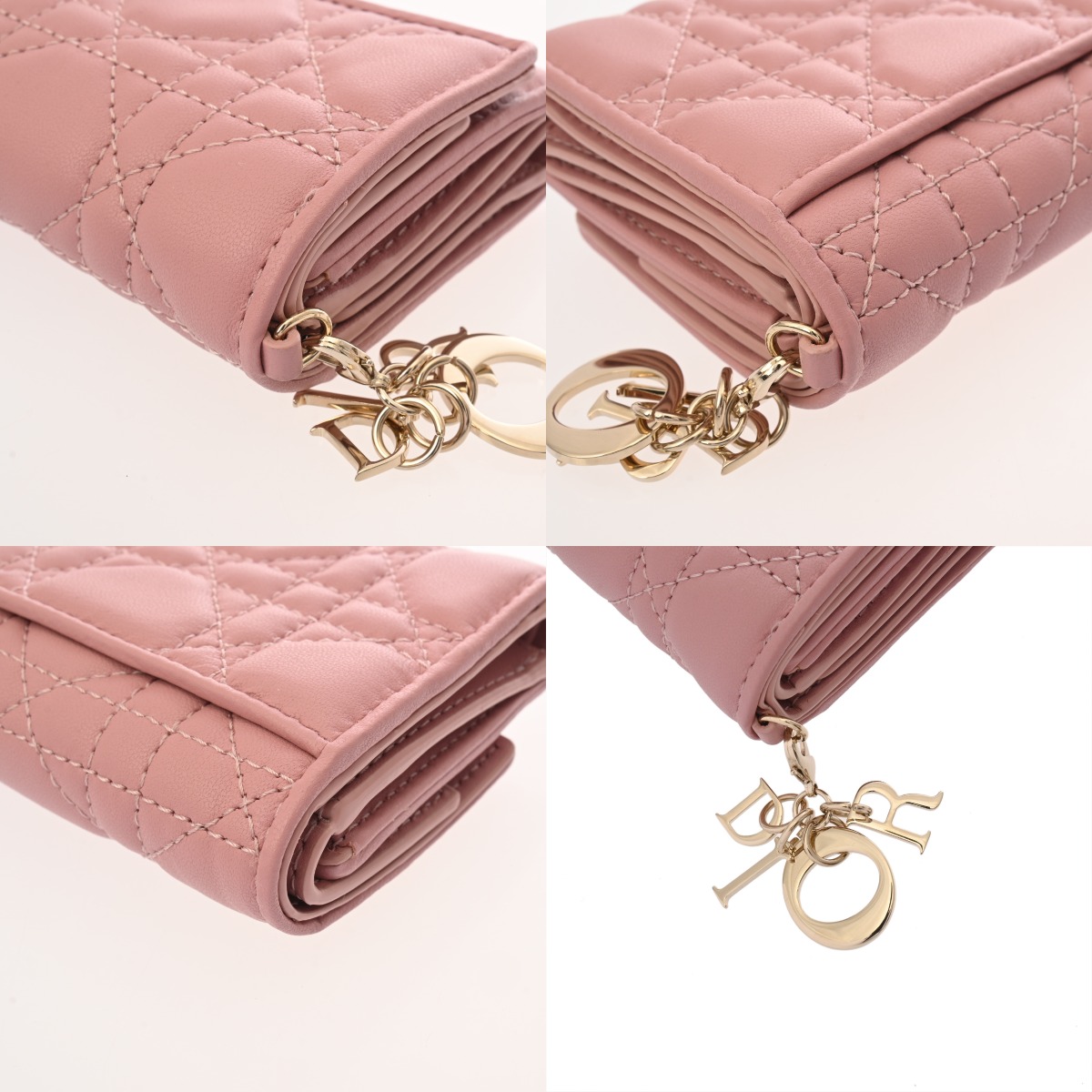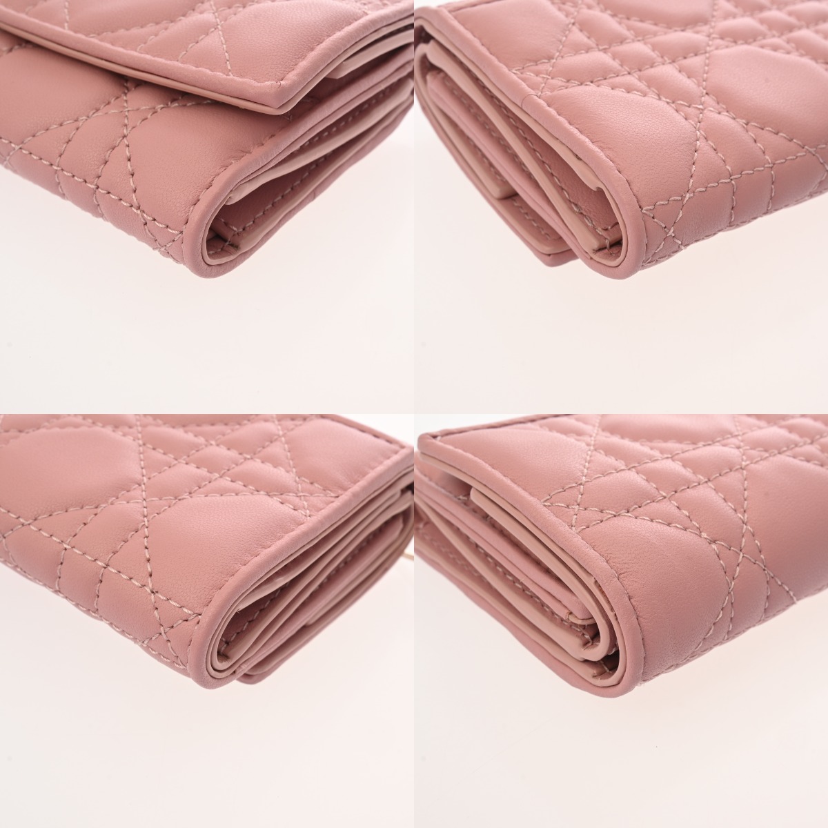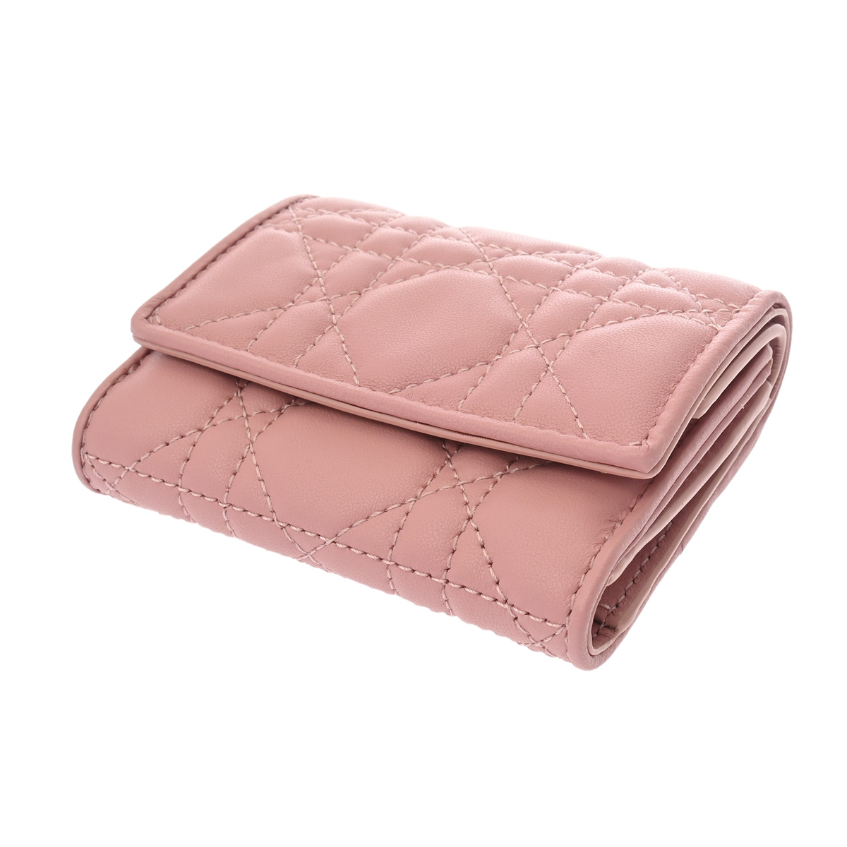 ディオール カナージュ LADY DIOR ロータスウォレット カナージュ アンティークピンク S01810NMJ_M77P レザー レディース 財布 【中古】【purse】