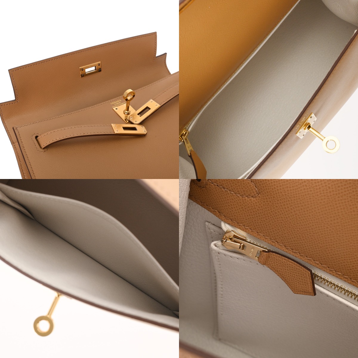 エルメス ケリー25 外縫い ヴェルソ ビスキュイ/ニューホワイト ヴォーマダム レディース バッグ 【中古】【bag】
