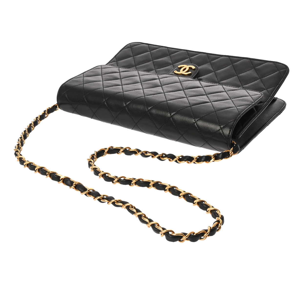 シャネル マトラッセ プッシュロック チェーンショルダー ブラック ラムスキン レディース バッグ 【中古】【bag】