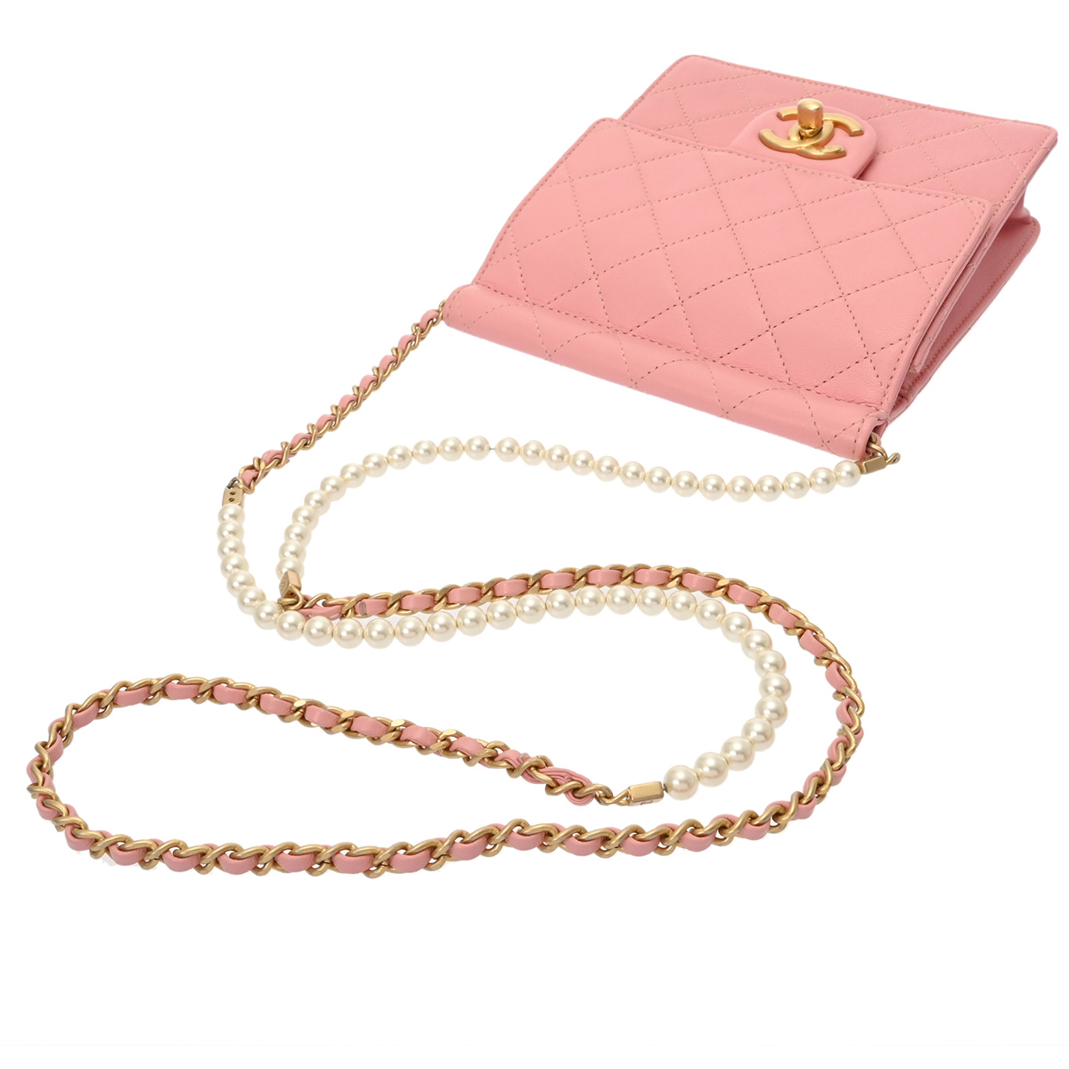 シャネル ミニフラップバッグ ピンク AS0580 フェイクパール/カーフスキン レディース バッグ 【中古】【bag】