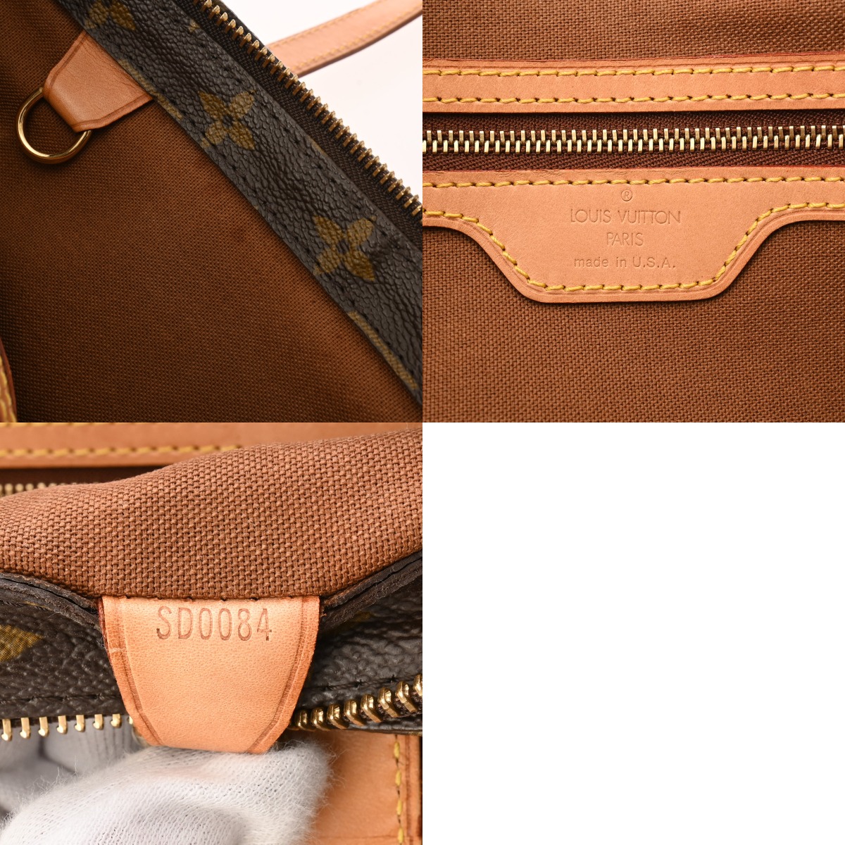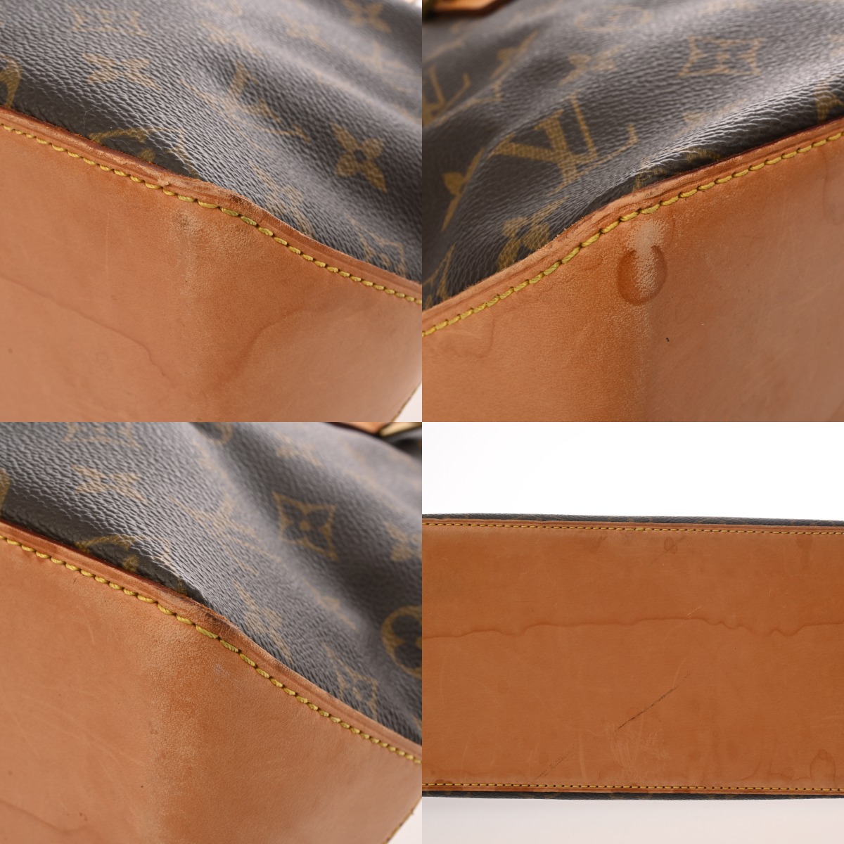 - たたみクセ、テカリ、薄汚れ、ヌメ革にヤケ、シミ、ショルダーにクセ、金具に色ハゲ、スリキズなど使用感がございます。