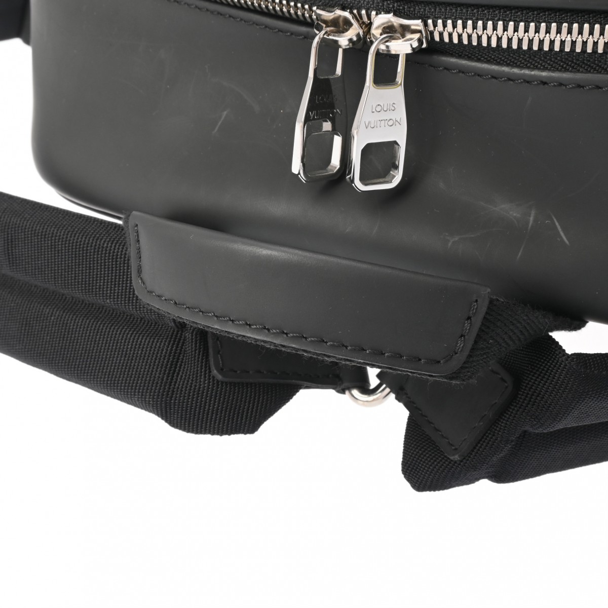 - ややつぶれ、黒のレザー部分にスレ、ショルダーに若干ヨレなど、少々使用感がございます。