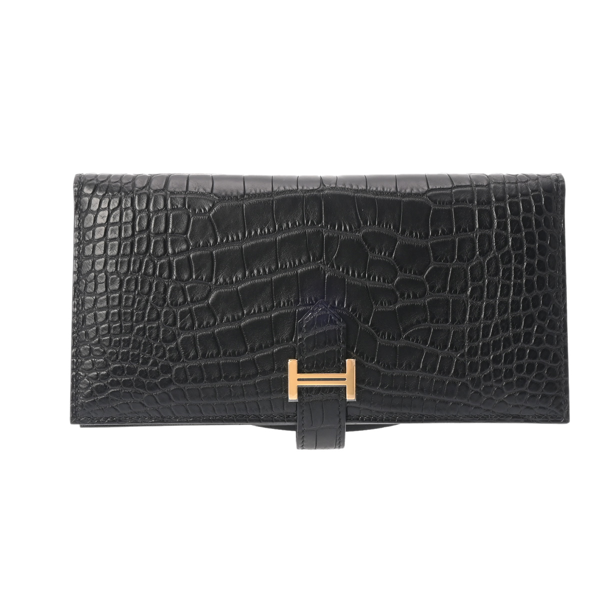 エルメス ベアン スフレ ブラック アリゲーターマット ユニセックス 財布 【未使用】【purse】