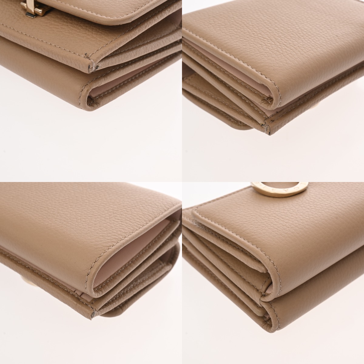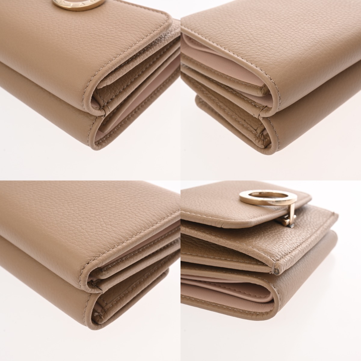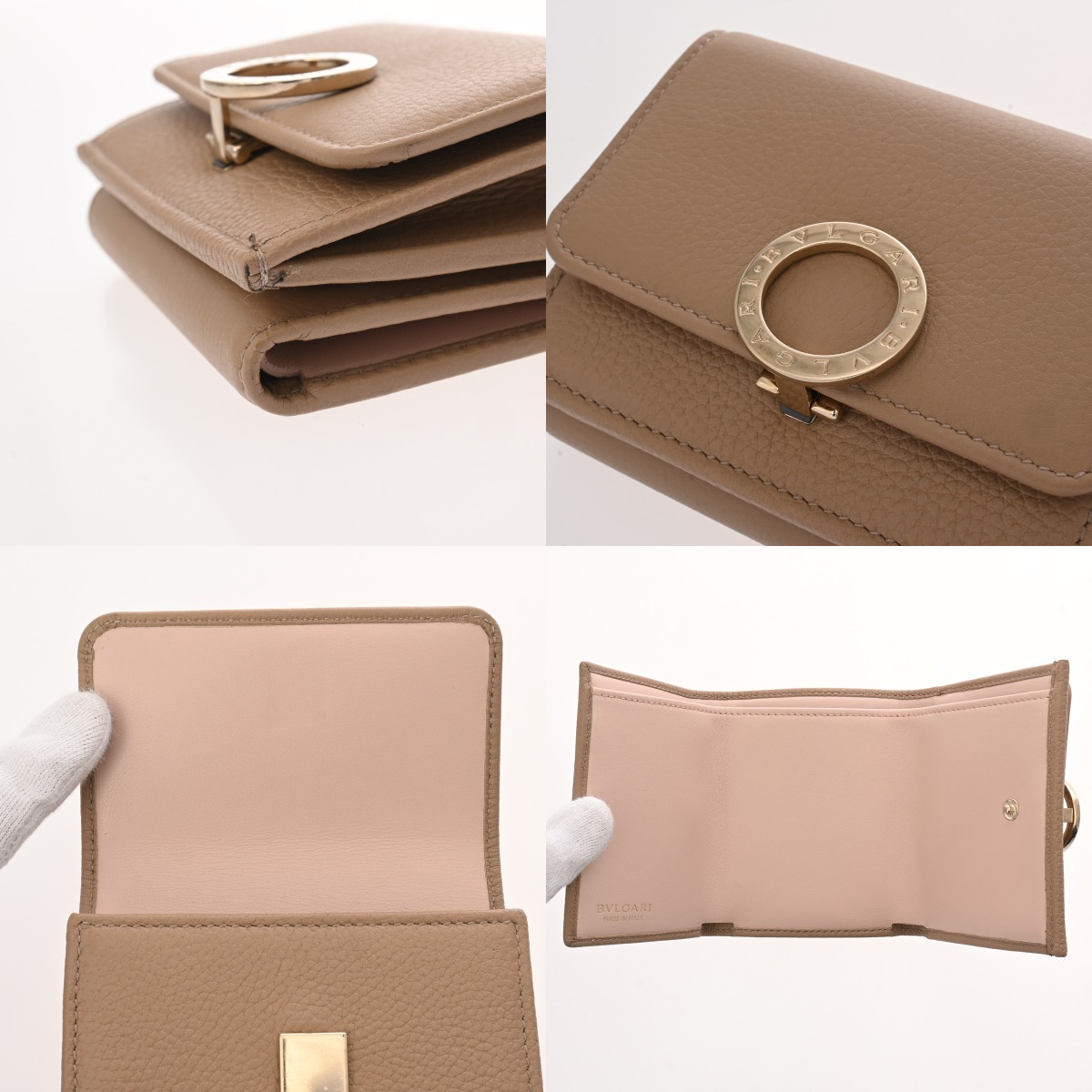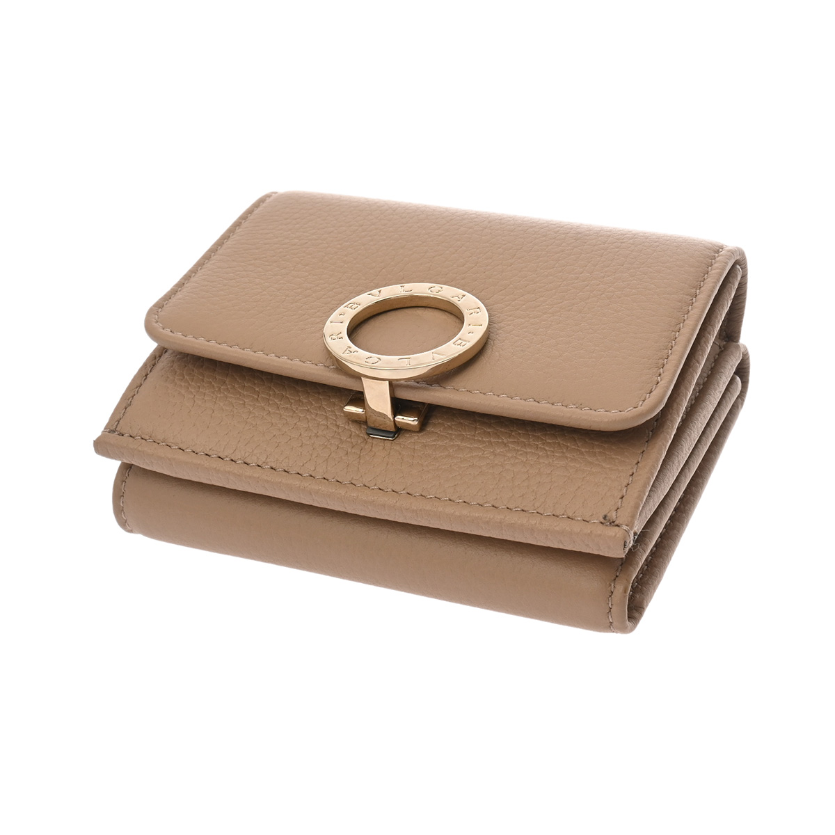 ブルガリ コンパクト ウォレット ベージュ レザー レディース 財布 【中古】【purse】