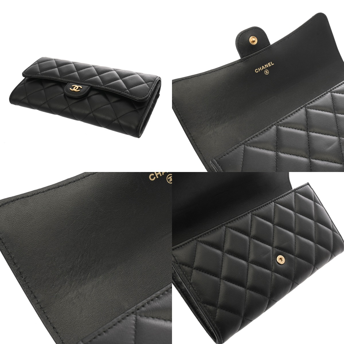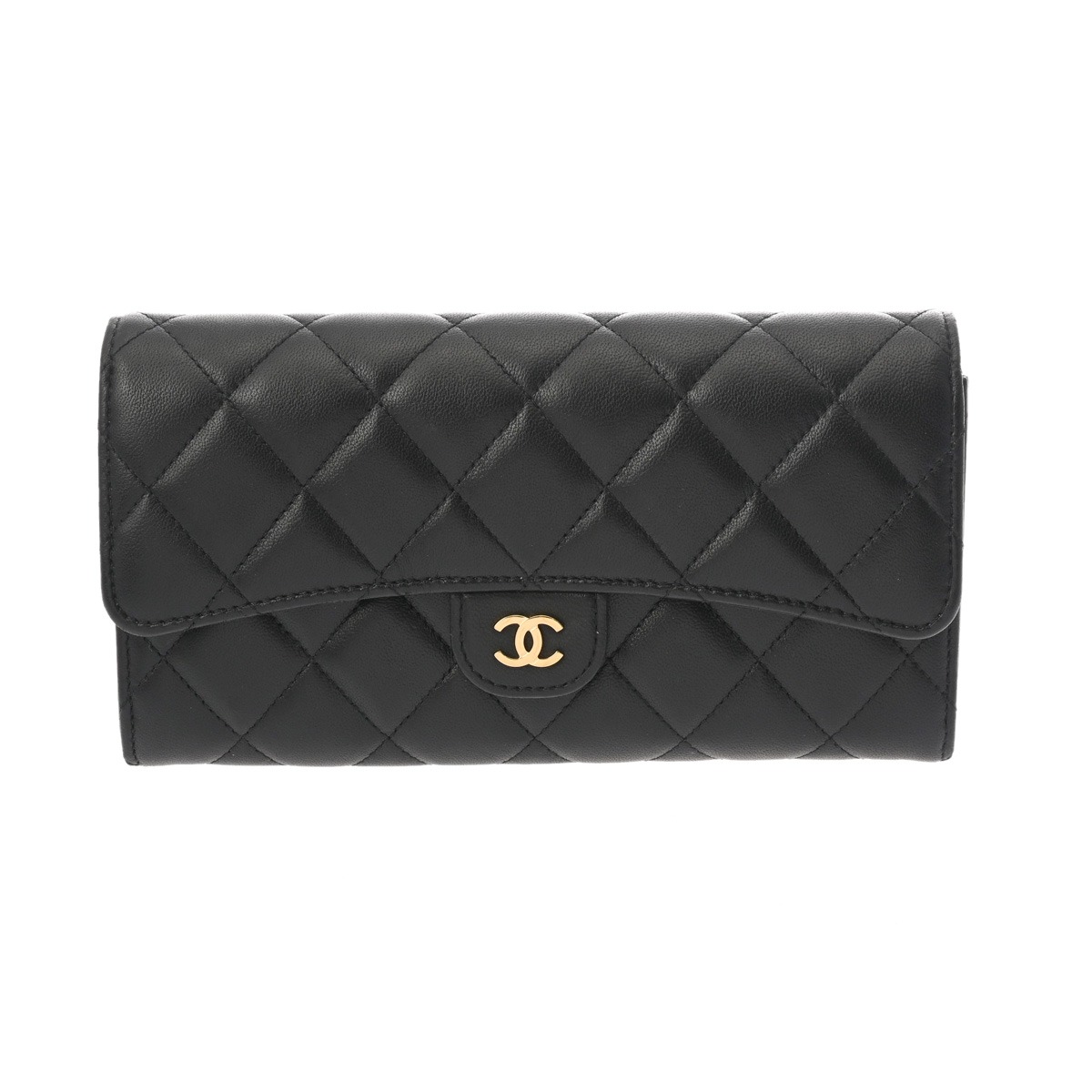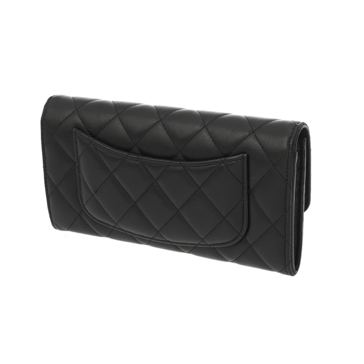 シャネル マトラッセ クラシックロング フラップウォレット ブラック AP0241 ラムスキン レディース 財布 【中古】【purse】