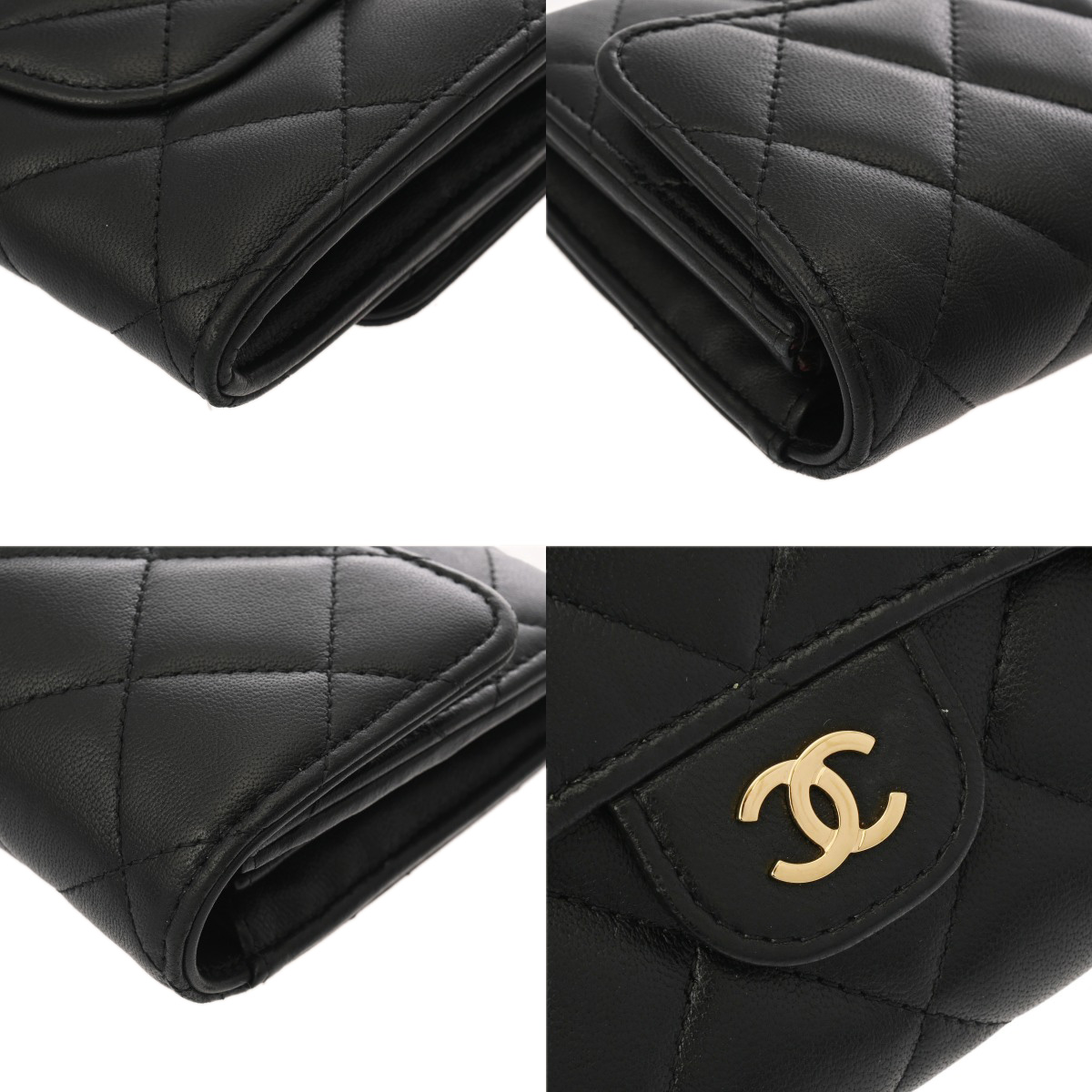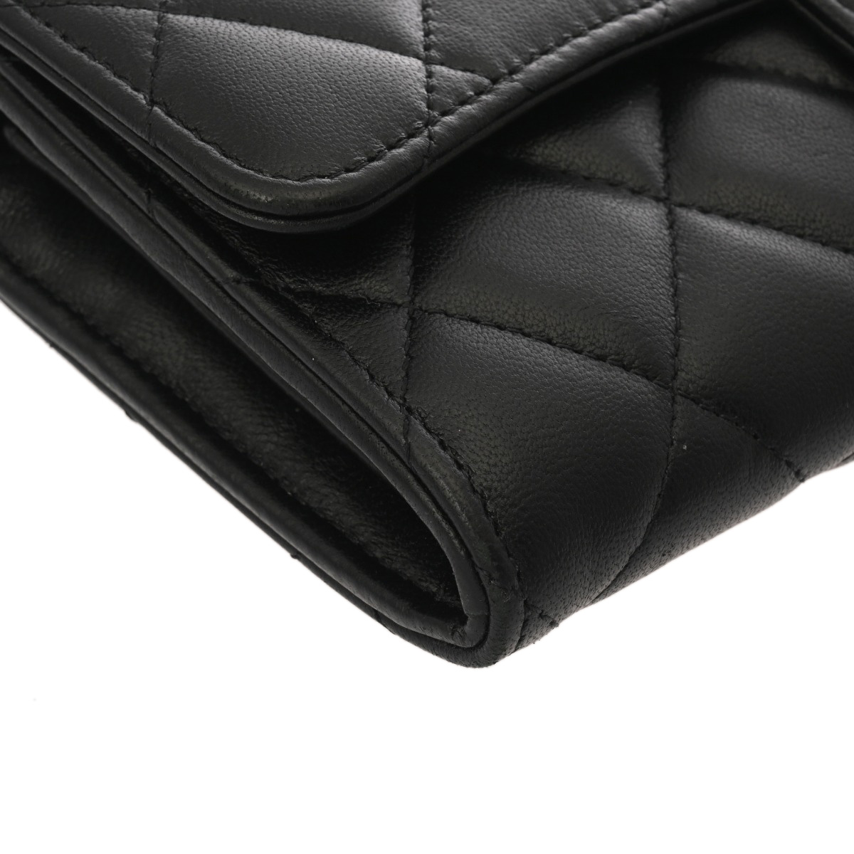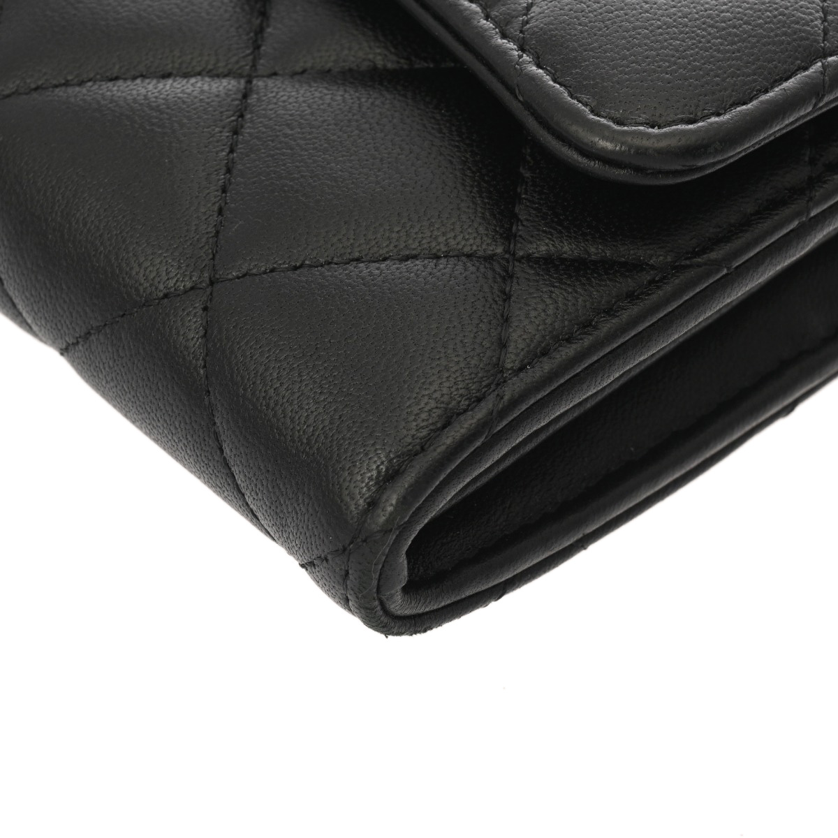 シャネル マトラッセ クラシックロング フラップウォレット ブラック AP0241 ラムスキン レディース 財布 【中古】【purse】
