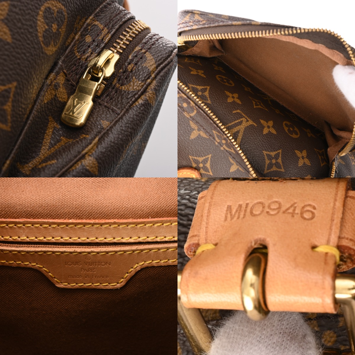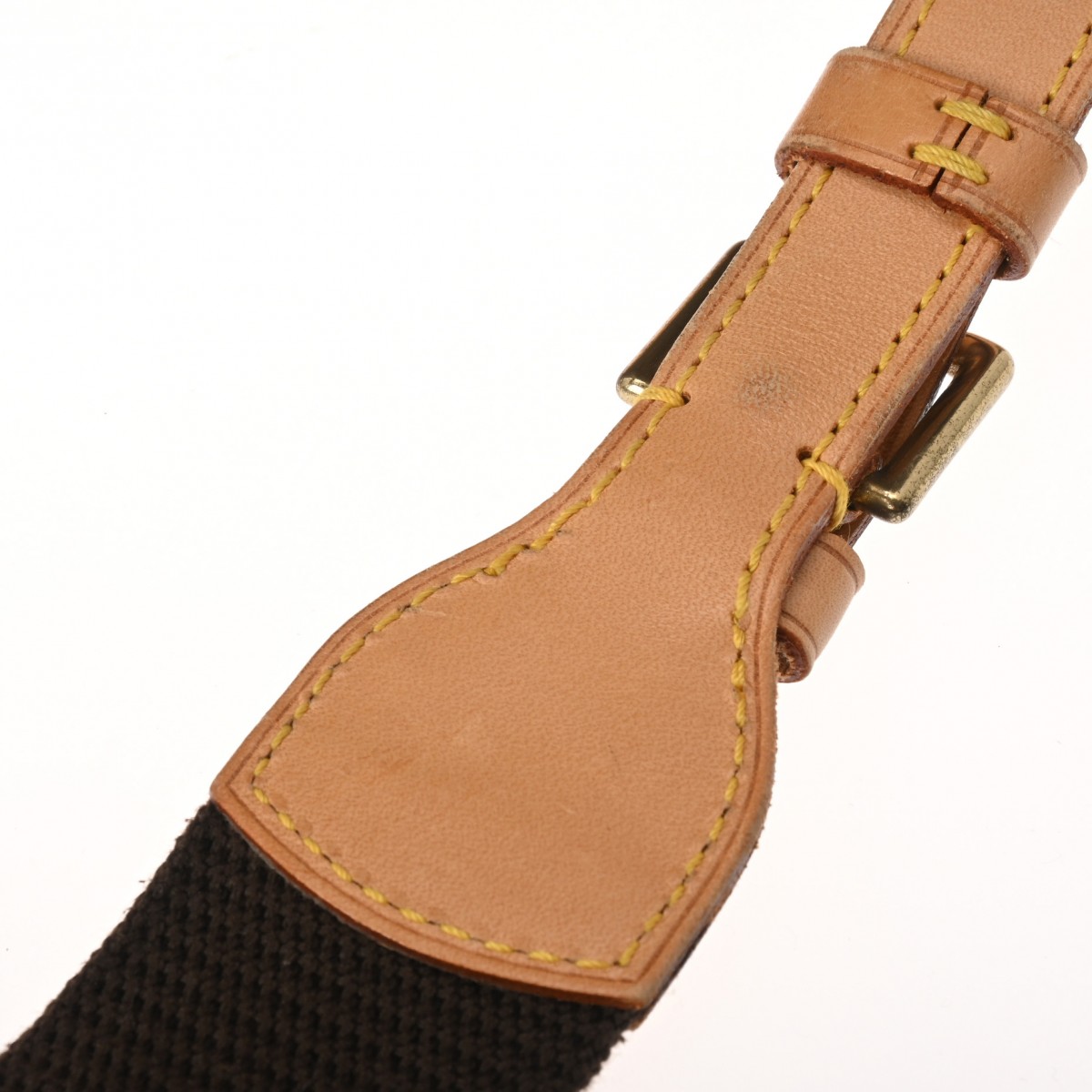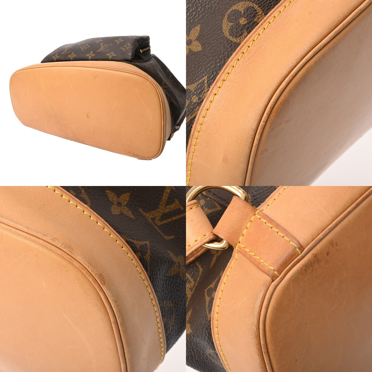 - つぶれ、たたみクセ、テカリ、薄汚れ、シワ、ショルダーにクセ、ヌメ革部分にヤケ、シミ、スレ、パイピングにハゲ、金具に変色など使用感がございます。