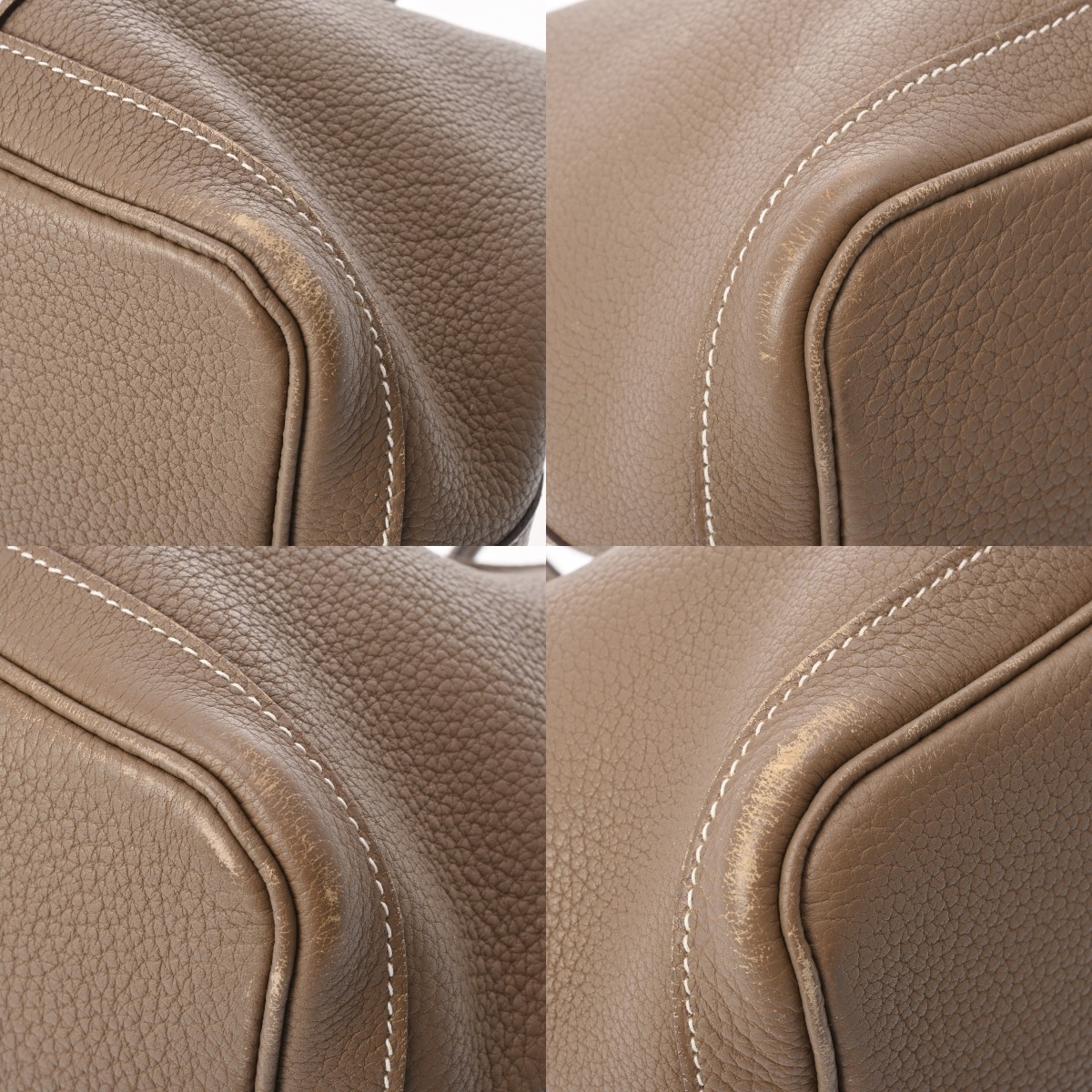 - 若干つぶれ、表面やコバスレ、底角スレやハゲなどダメージ、金具にスリキズなど使用感がございます。