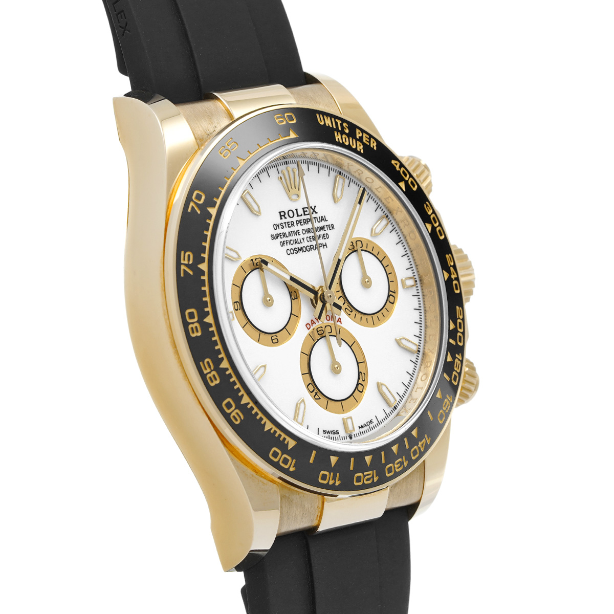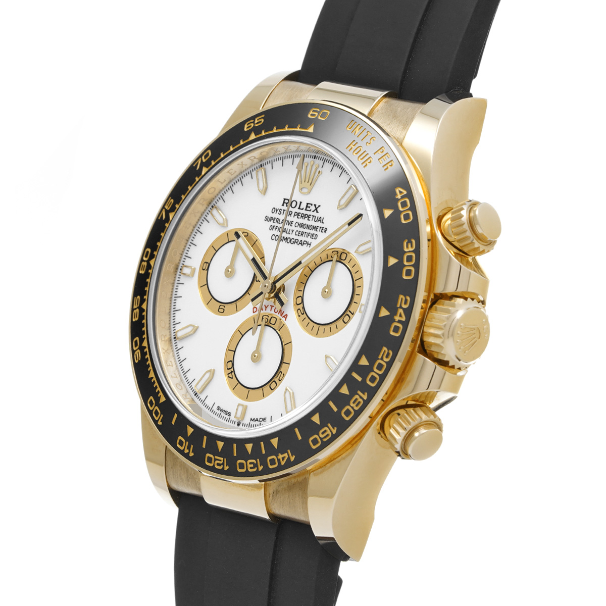 コメントコスモグラフ デイトナの、イエローゴールドケースにオイスターフレックスブレスレットやセラクロムベゼルを採用したスポーティーなバリエーションです。