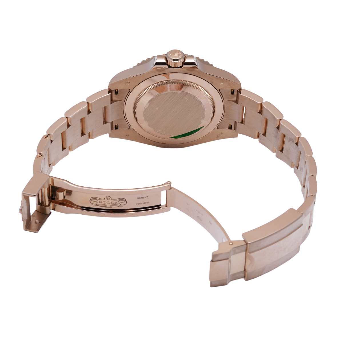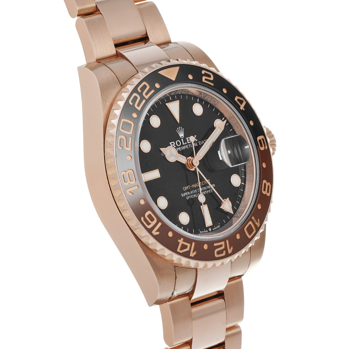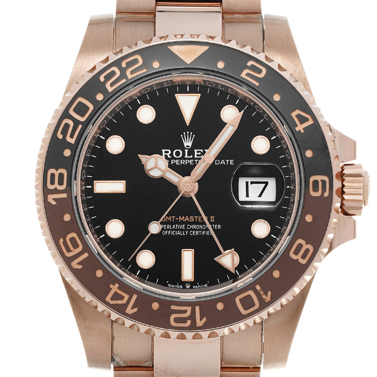 こちらはGMTマスターとして初めてエバーローズゴールド製のケースとブレスレットを採用したモデル。