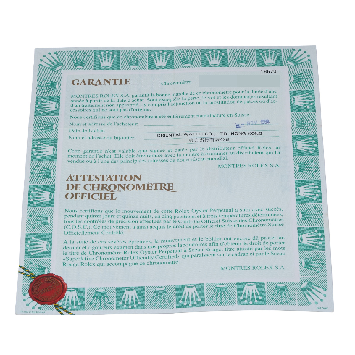 - 時計の当社保証