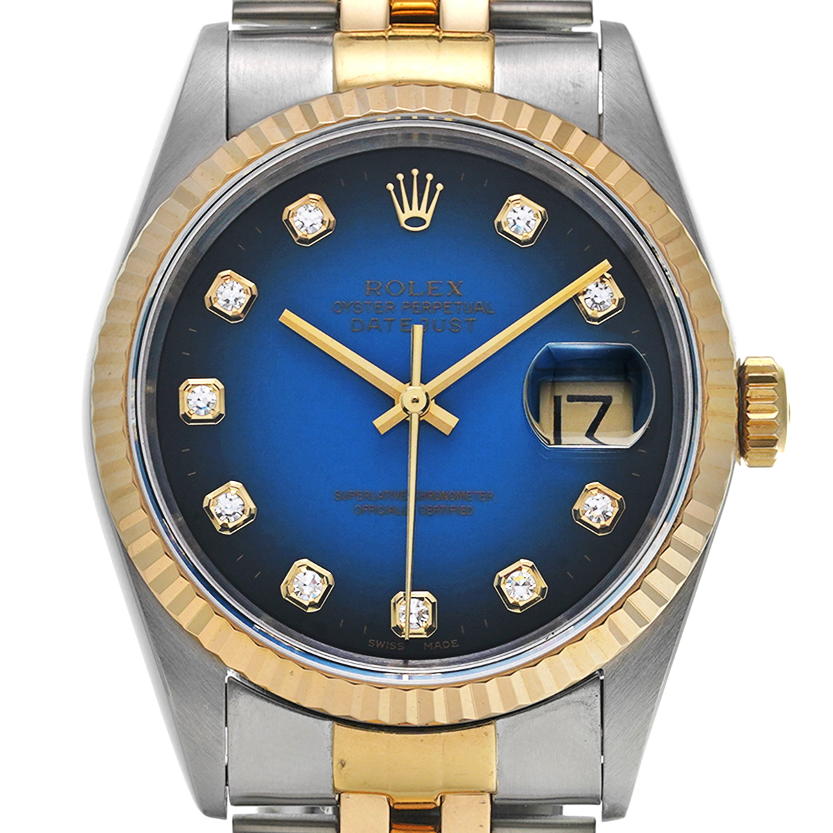 ロレックス デイトジャスト 16233G ブルー・グラデーション/ダイヤモンド メンズ 時計 【中古】【wristwatch】