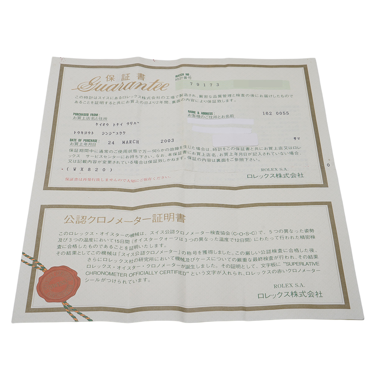 - 時計の当社保証