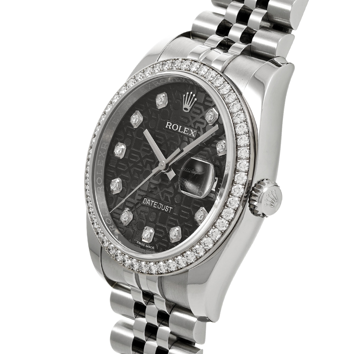 ロレックス デイトジャスト 36 116244G ブラックコンピュータ/ダイヤモンド メンズ 時計 【中古】【wristwatch】