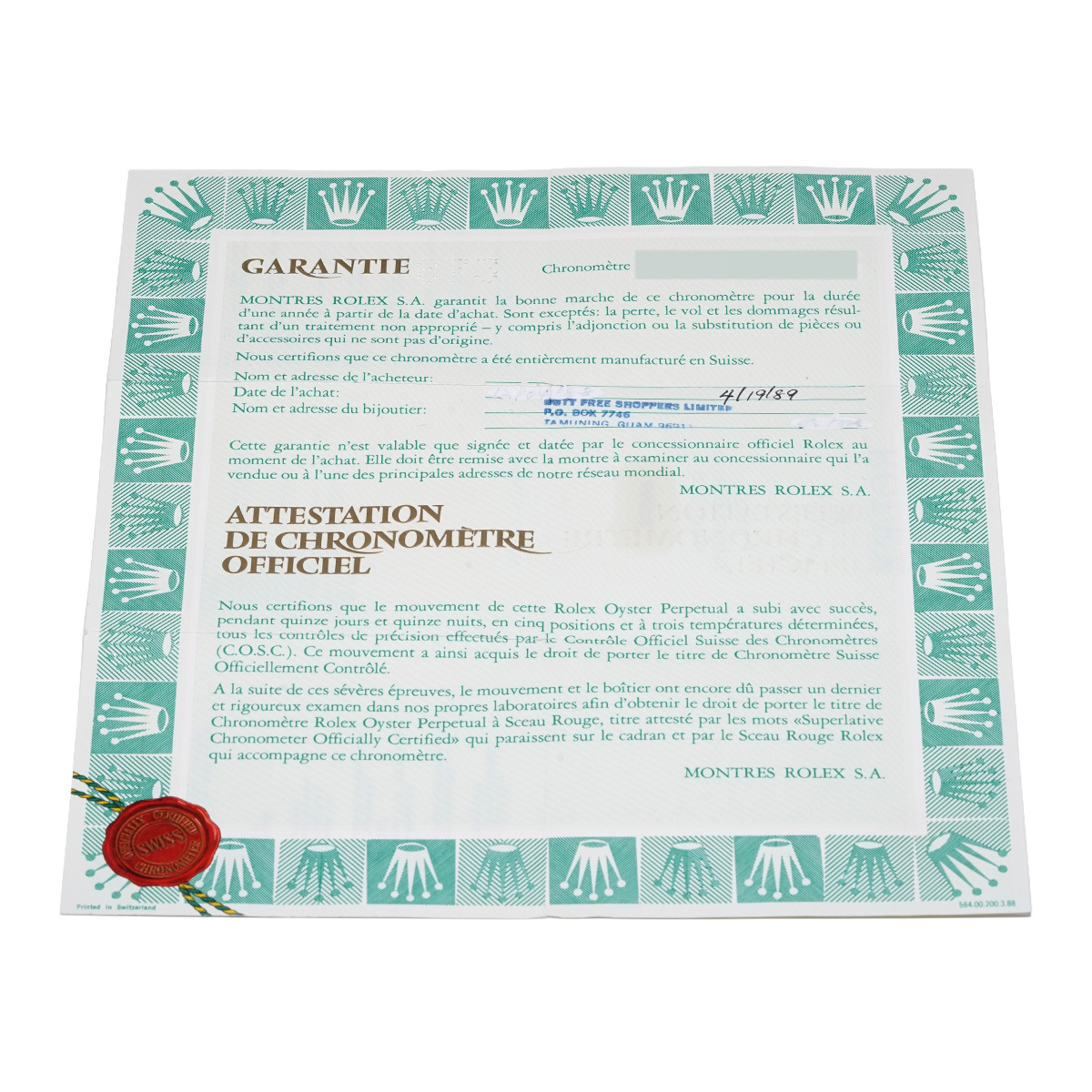 - メーカー保証書( 1989年4月海外購入)