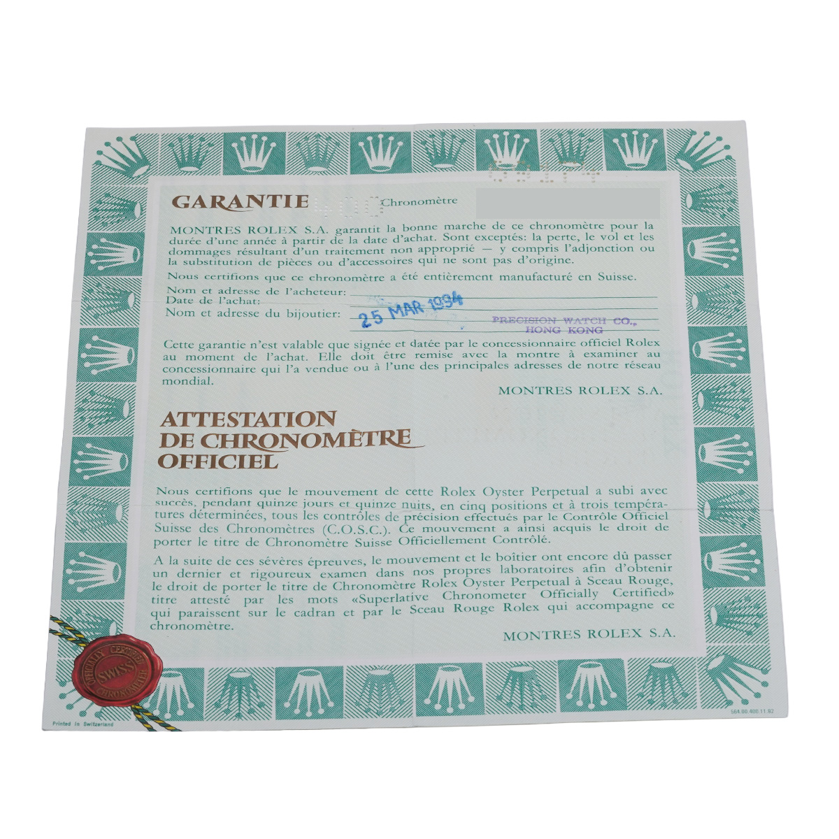 - メーカー保証書( 1994年3月海外購入) / メーカー箱/冊子/タグ