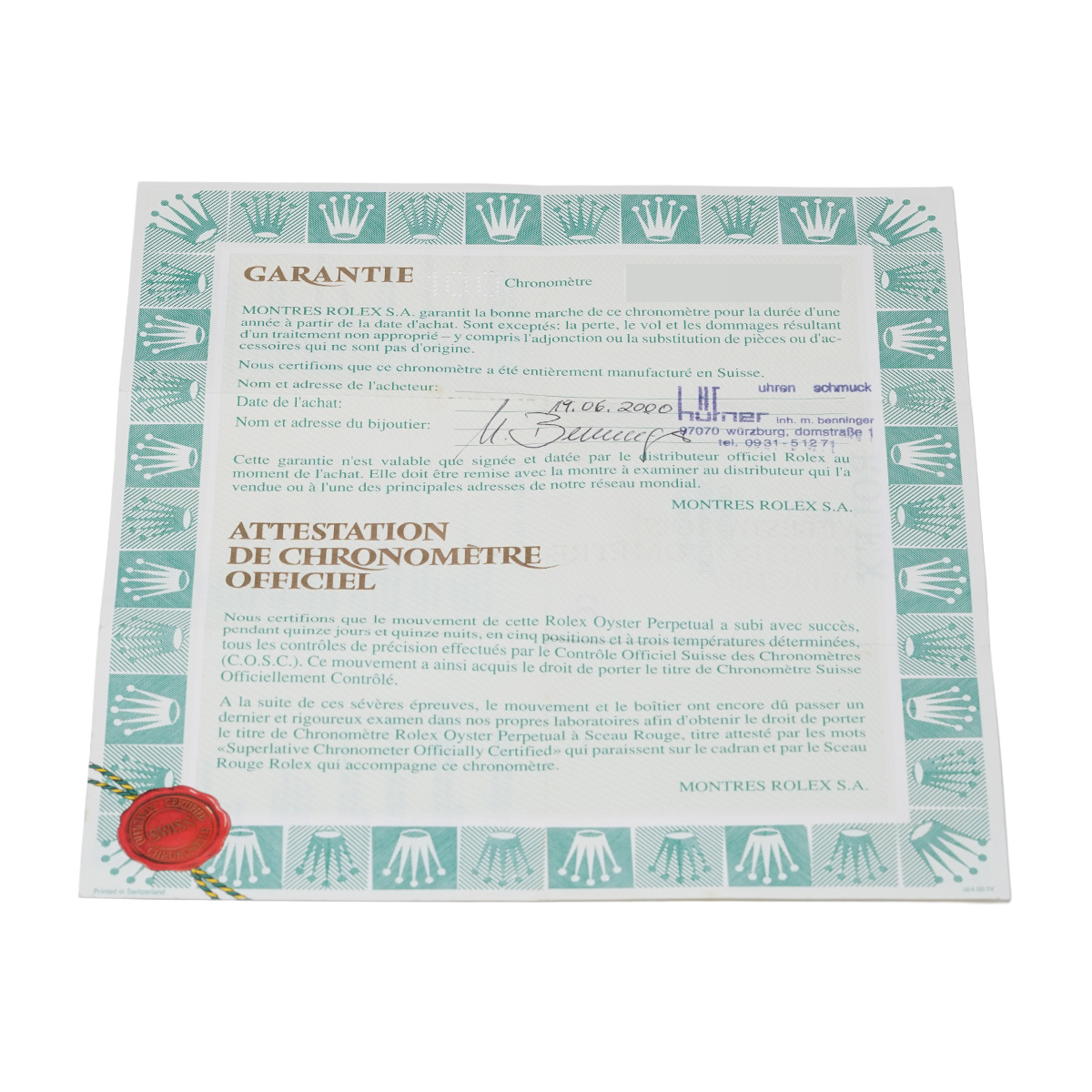 - メーカー保証書( 2000年6月海外購入) / 内箱(ダメージ)