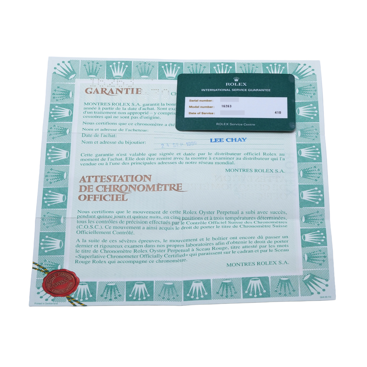 - メーカー保証書( 1999年9月海外購入) / メーカー箱/冊子/タグ / 国際サービス保証書(2011年2月オーバーホール)