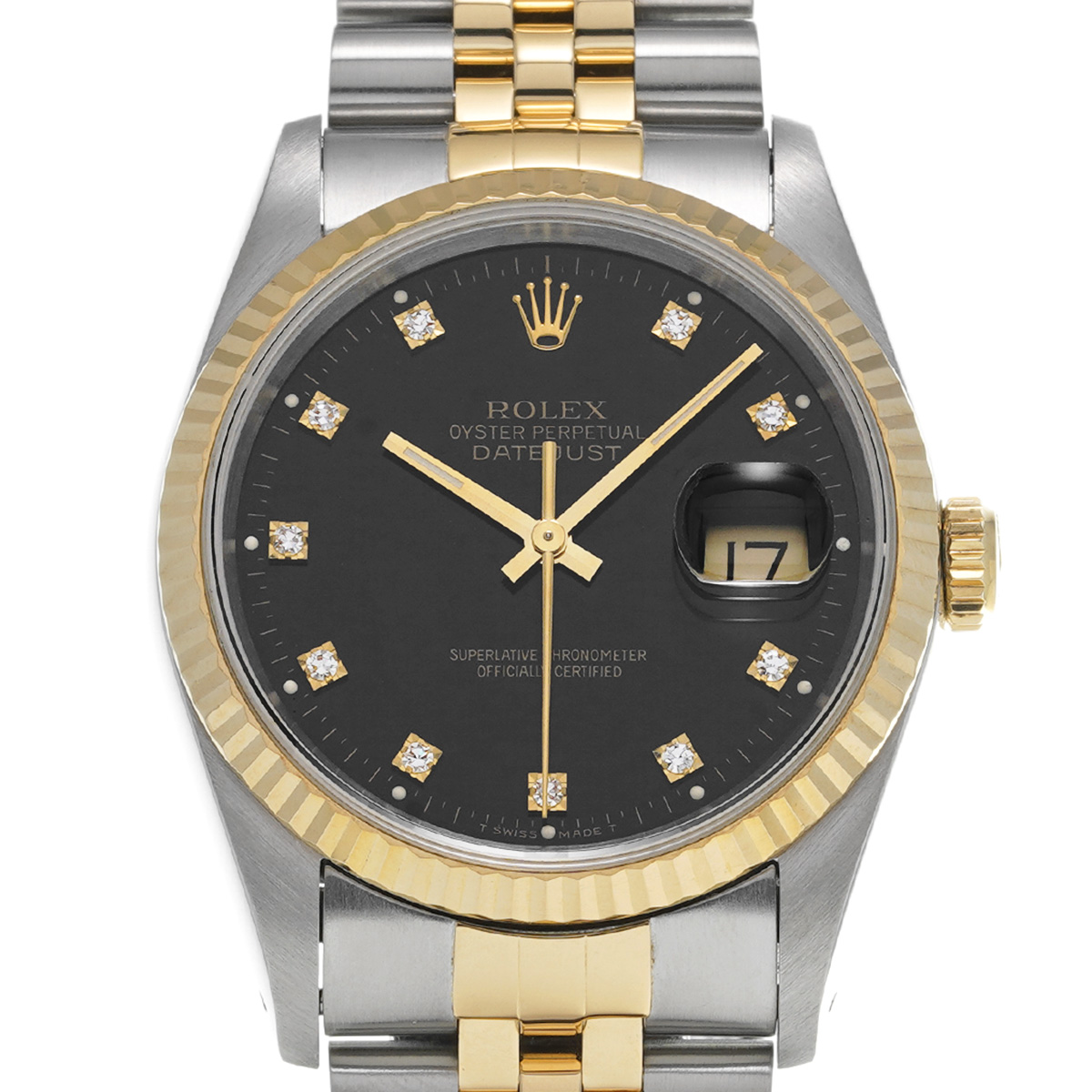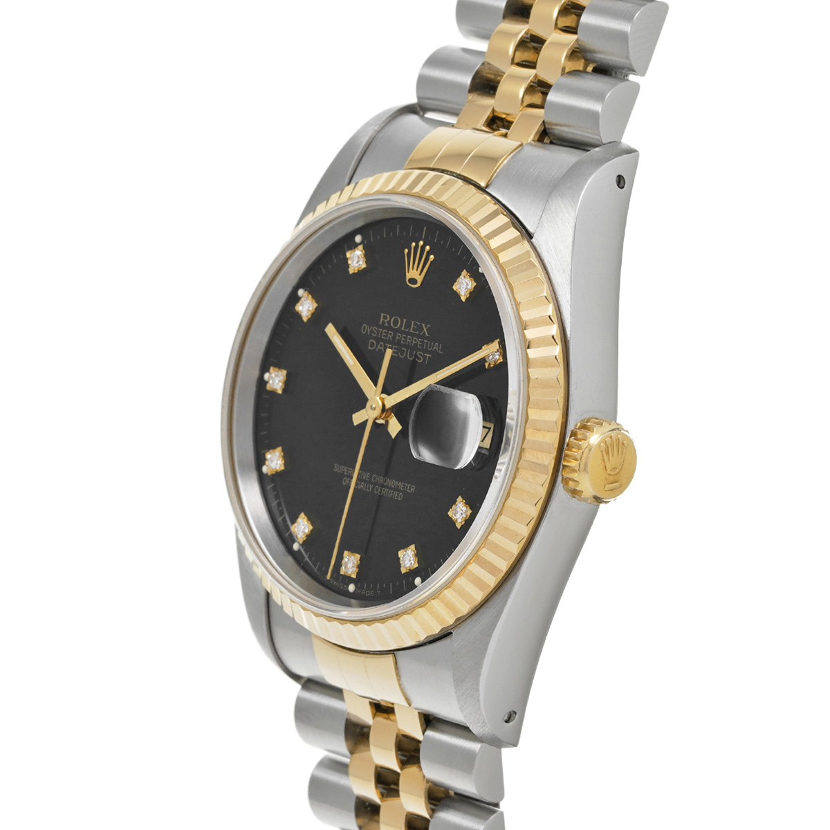 ロレックス デイトジャスト 16233G ブラック/ダイヤモンド メンズ 時計 【中古】【wristwatch】