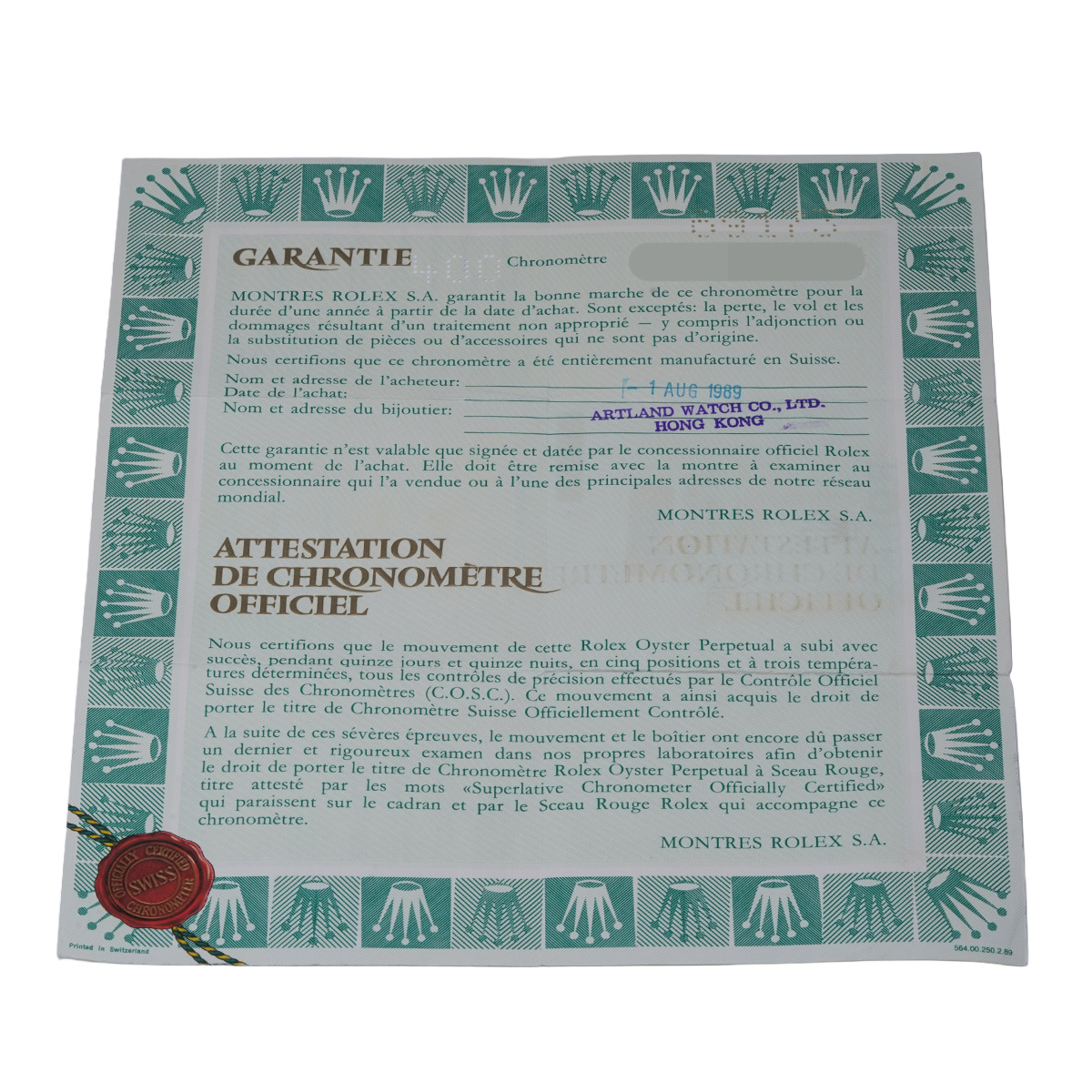 - メーカー保証書( 1989年8月海外購入) / タグ