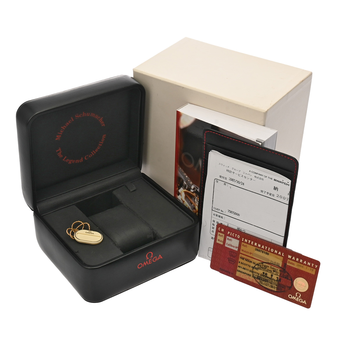 - メーカー保証書( 2006年1月海外購入) / メーカー箱(ダメージ)/冊子/ピクトグラム/クロノメーター証明書 / 納品書(2007年11月メンテナンスサービス)