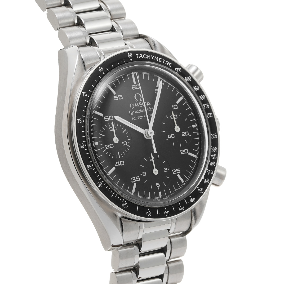 コメントこのスピードマスター リデュースドとも呼ばれるモデルは、オメガの代表的な時計であるスピードマスター プロフェッショナルのツールとして研ぎ澄まされた精悍さはそのままに、ケース径を39ミリに縮小して腕上での収まりを改善すると共に、自動巻きムーブメントの採用によって利便性を向上させることで、より多くの人々の日常に寄り添える時計を目指したものです。