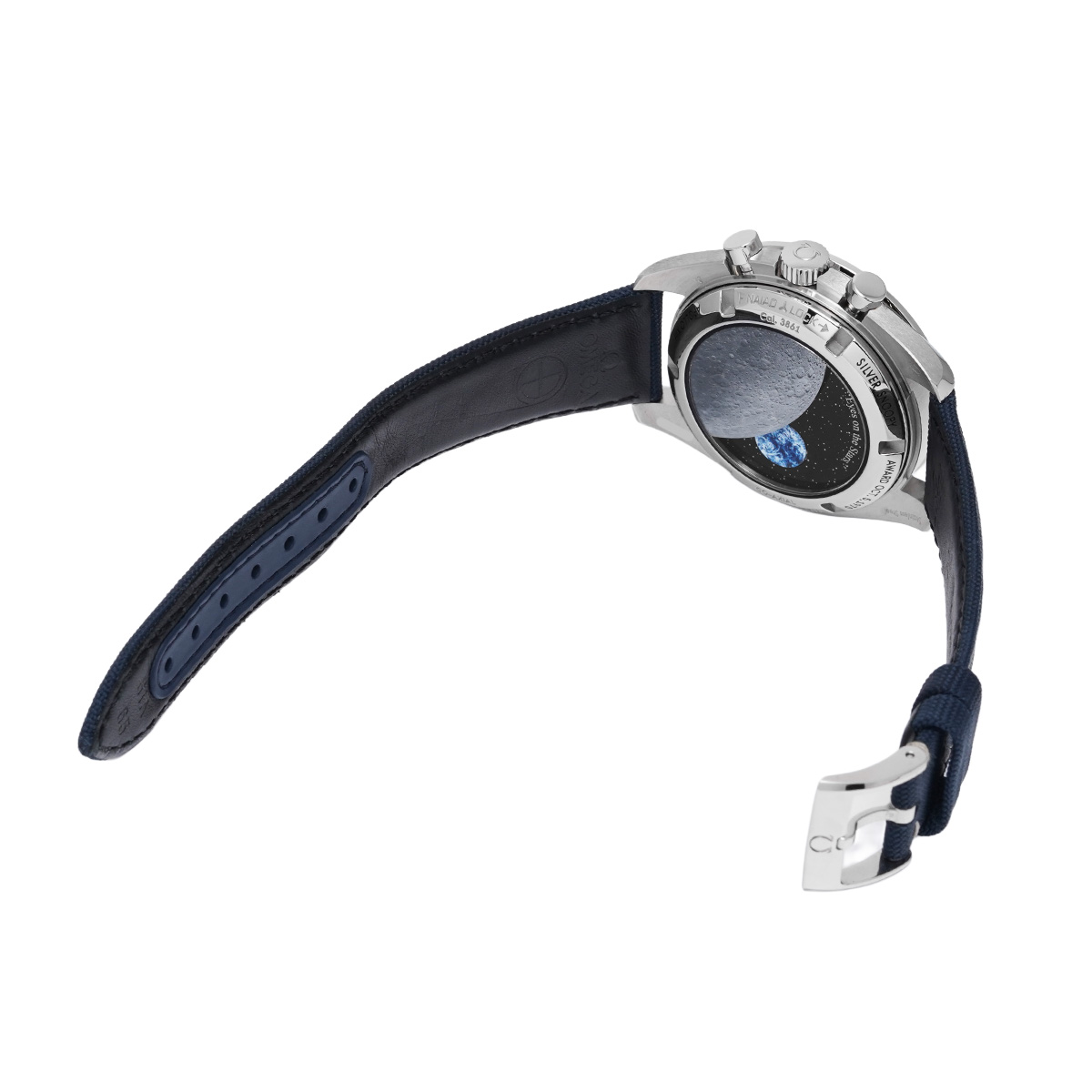シルバーとダークブルーのツートンカラーを基調として、スモールセコンドにアストロノートのスヌーピーが描かれ、裏蓋にはスヌーピーを載せた宇宙船がクロノグラフと連動して動くギミックをはじめ、さまざまな特別仕様が盛り込まれています。