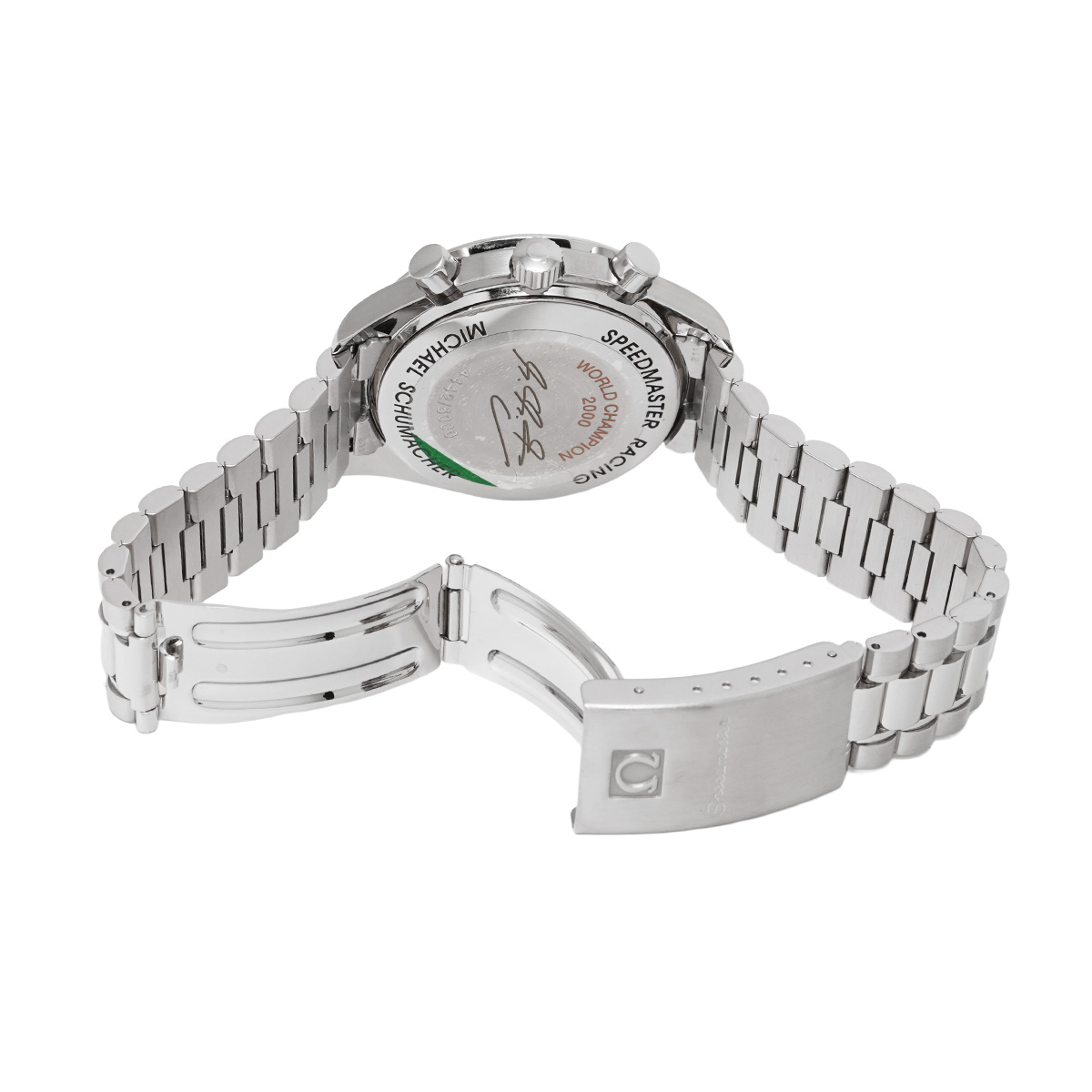 コメント2000年にミハエル・シューマッハにとって三度目となるワールドチャンピオンシップ獲得、およびオメガのアンバサダー就任を記念して、6000本の限定で発売されたスペシャルモデル。