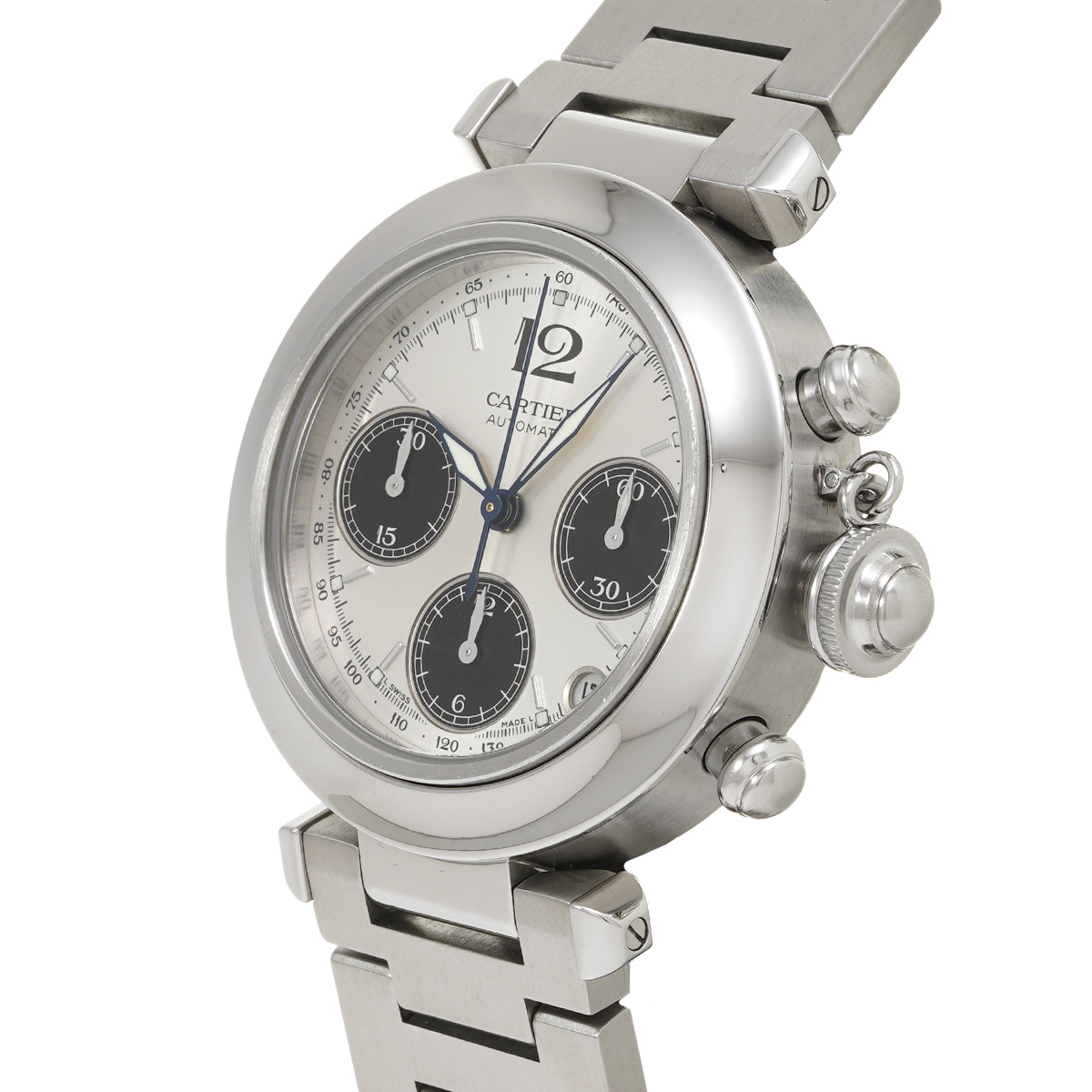 カルティエ パシャC クロノグラフ W31048M7 シルバー/ブラック メンズ 時計 【中古】【wristwatch】