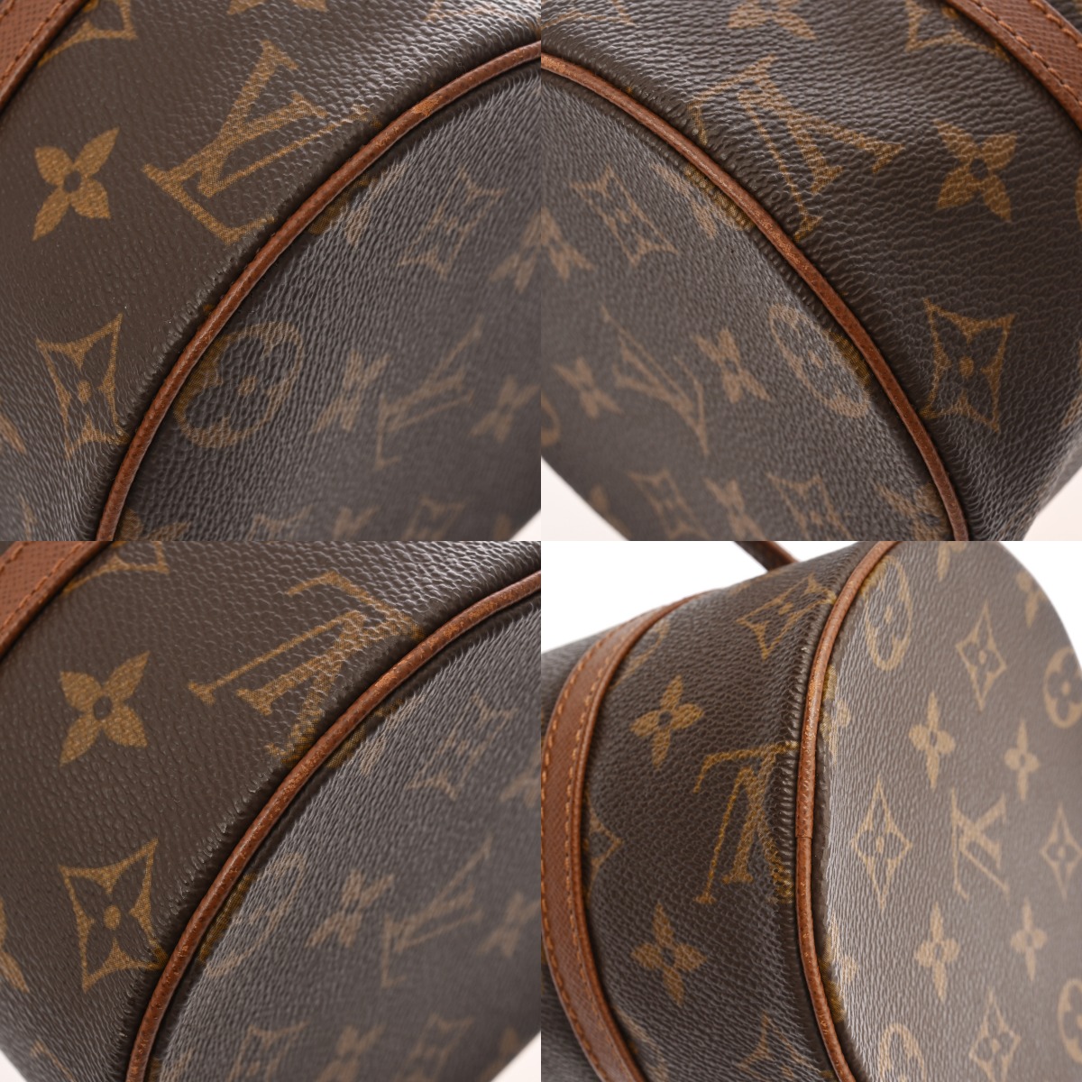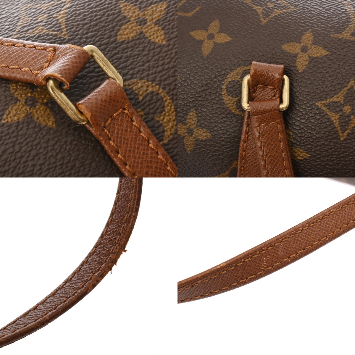 - テカリ、若干つぶれ、持ち手にクセ、ハゲ、金具に色ハゲなど、使用感がございます。