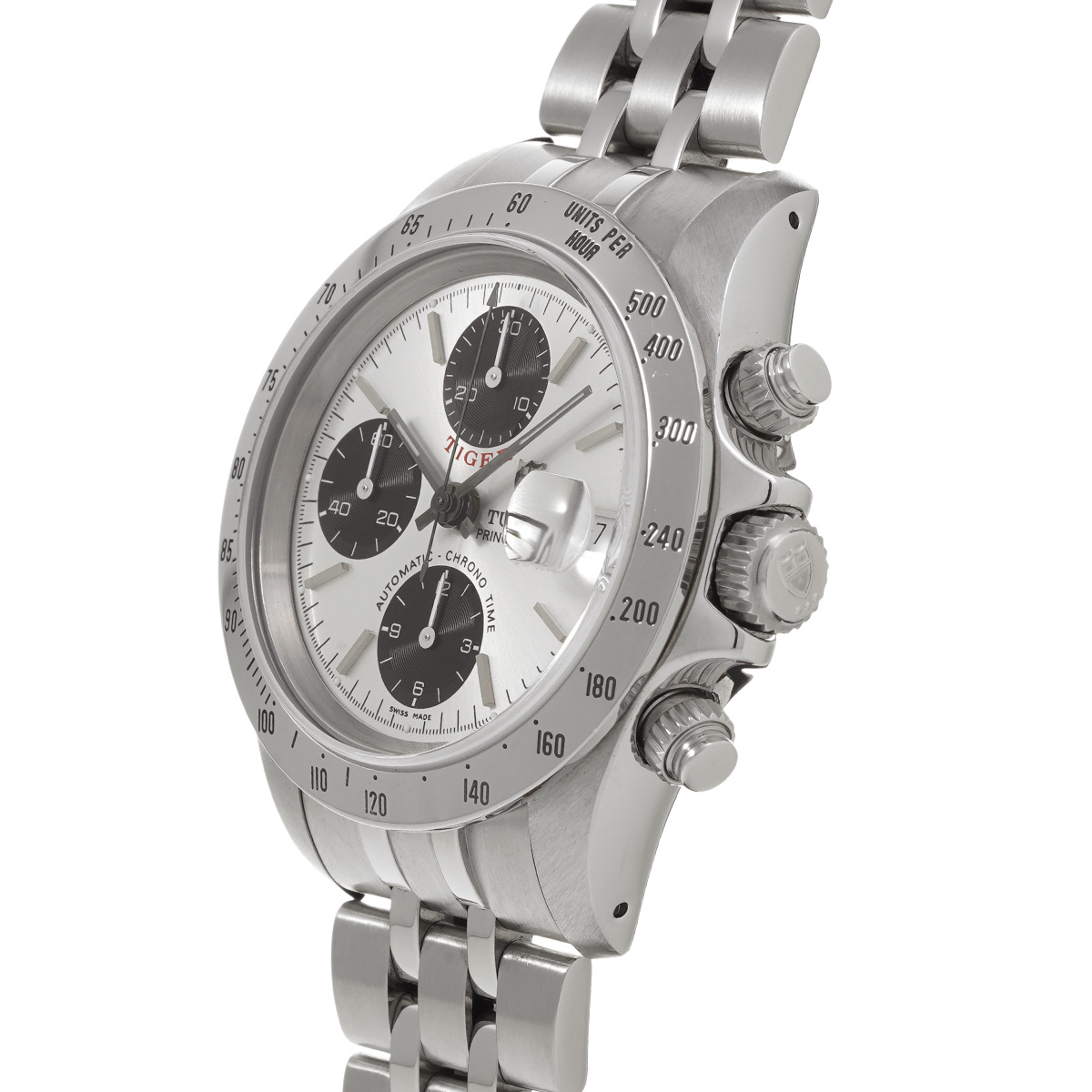 引き続き手巻き時代のデイトナに通じる意匠の数々を継承しており、当初はケースやリューズなどにロレックスの王冠マークを残していますが、これらがチューダーの盾マークに順次変更されたほか、1998年にはチューダー独自のRef.62490の5連ブレスレットに変更されるなど、チューダーブランドのアイデンティティーを強く打ち出すようになりました。 -