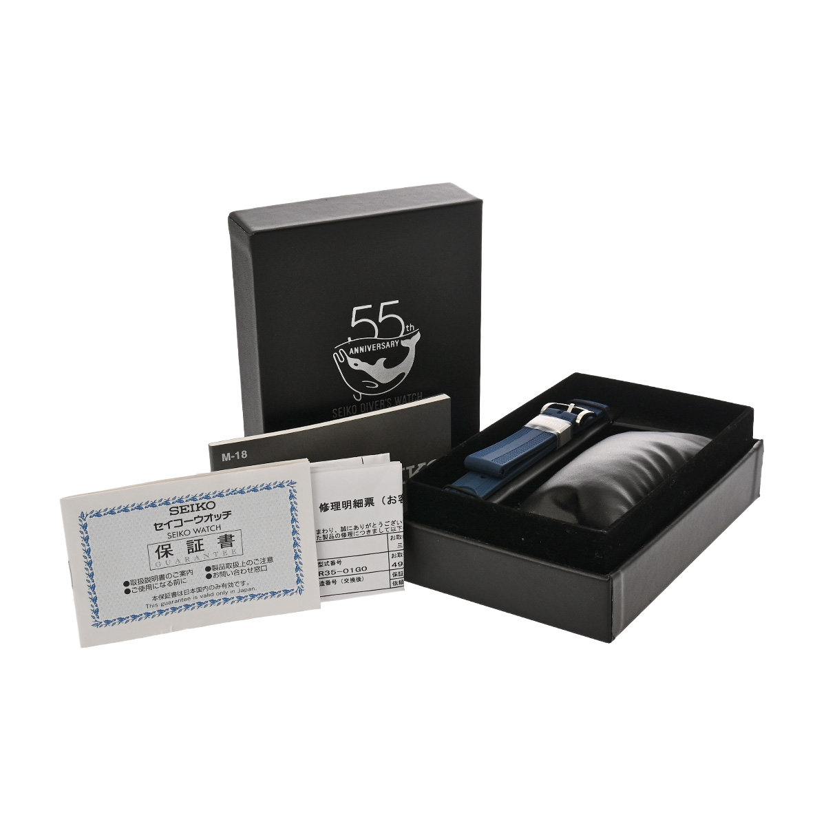 - メーカー保証書( 2022年10月国内購入) / 替えベルト( ブルー/シリコン) / メーカー箱/冊子 / 修理明細書(2023年1月パッキン交換)