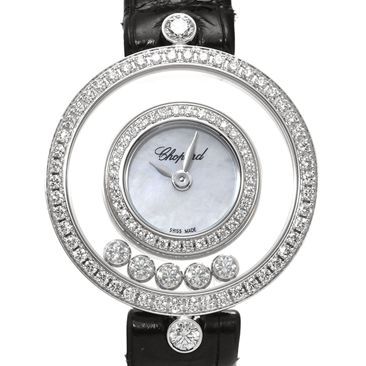 ショパール ハッピーダイヤモンド 203957-1208 ホワイトシェル/ダイヤモンド レディース 時計 【中古】【wristwatch】