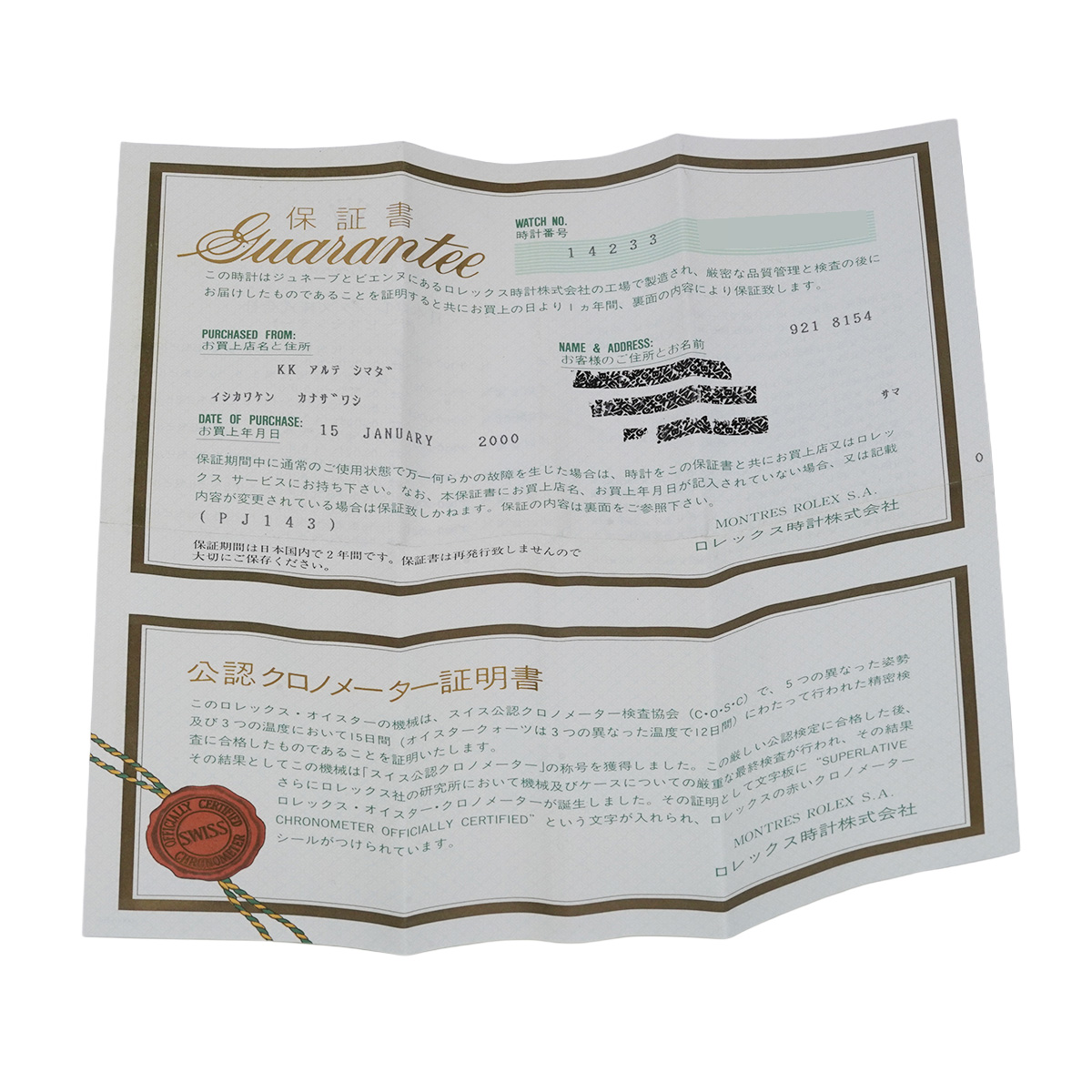 - 時計の当社保証