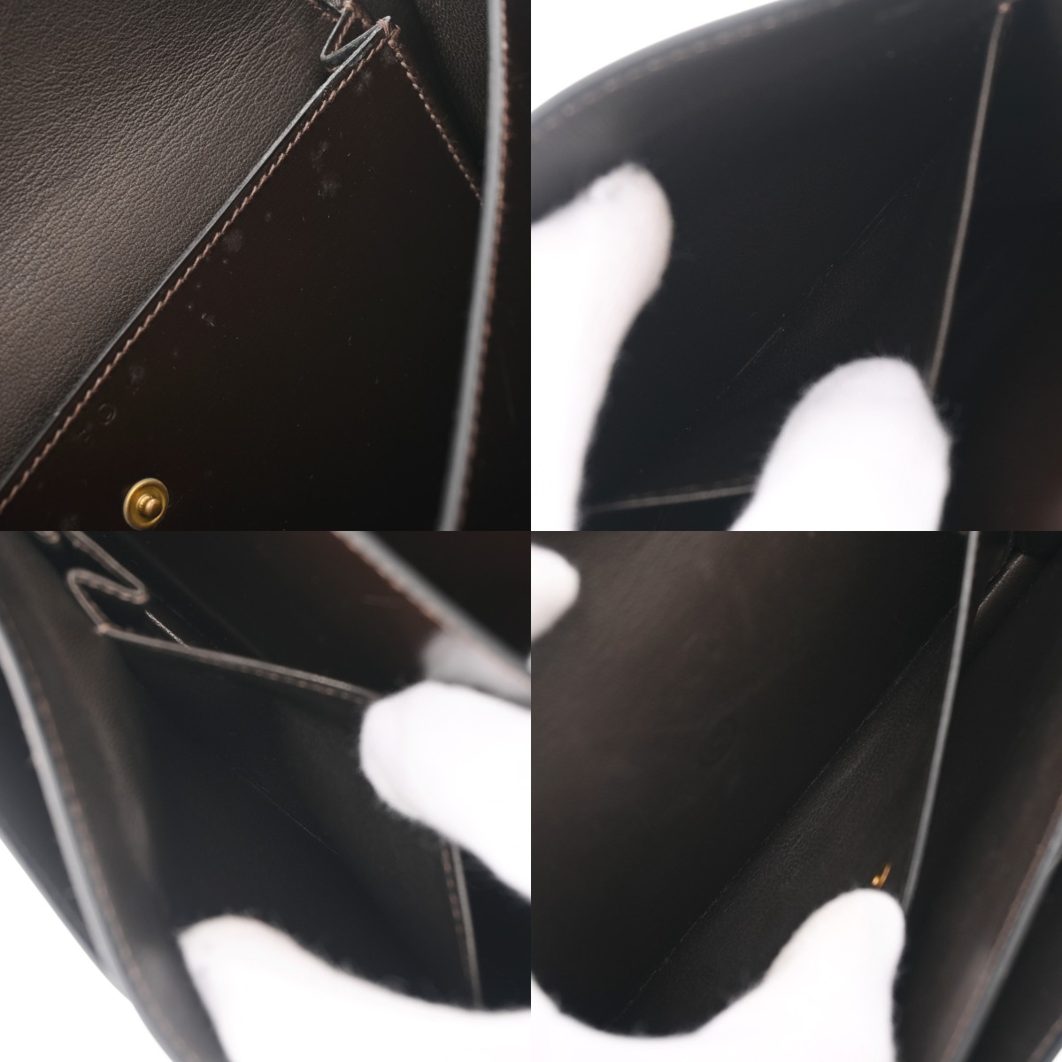 - 若干押し跡、スレやシワ、薄汚れ、スレキズ、金具にメッキ剥がれやスレキズなど若干使用感がございます。