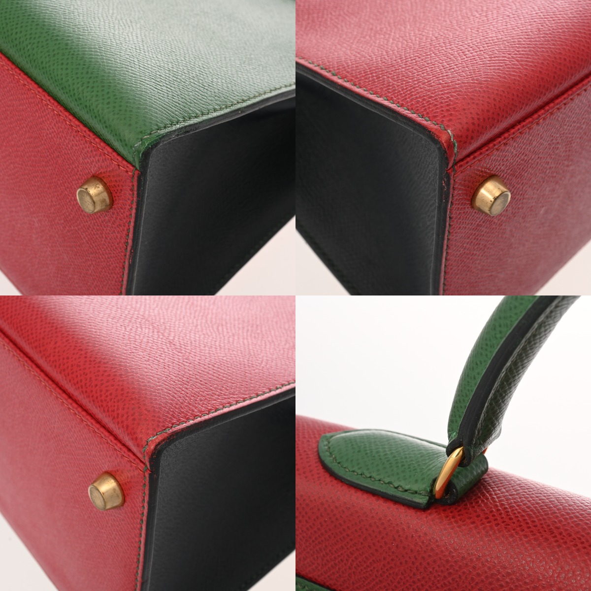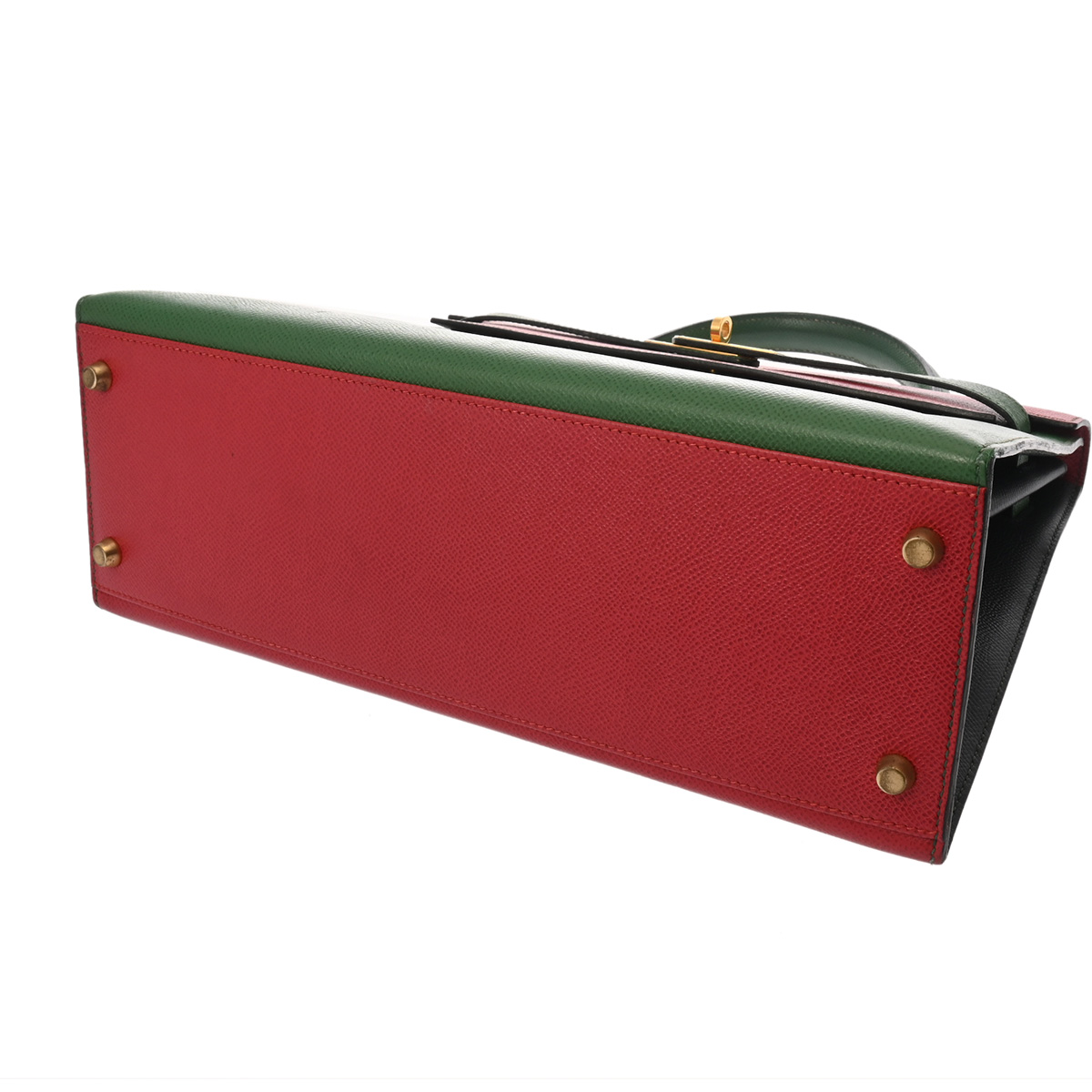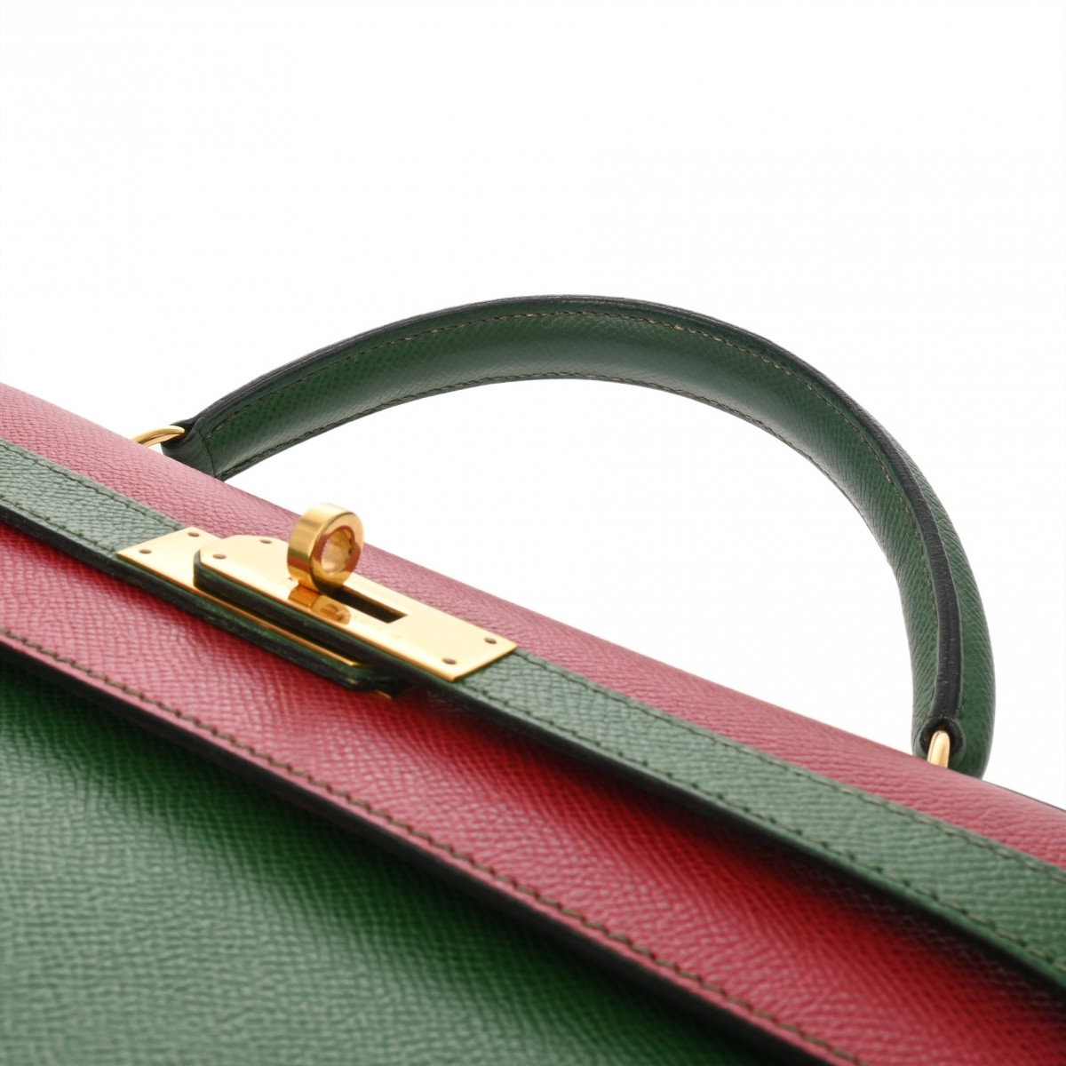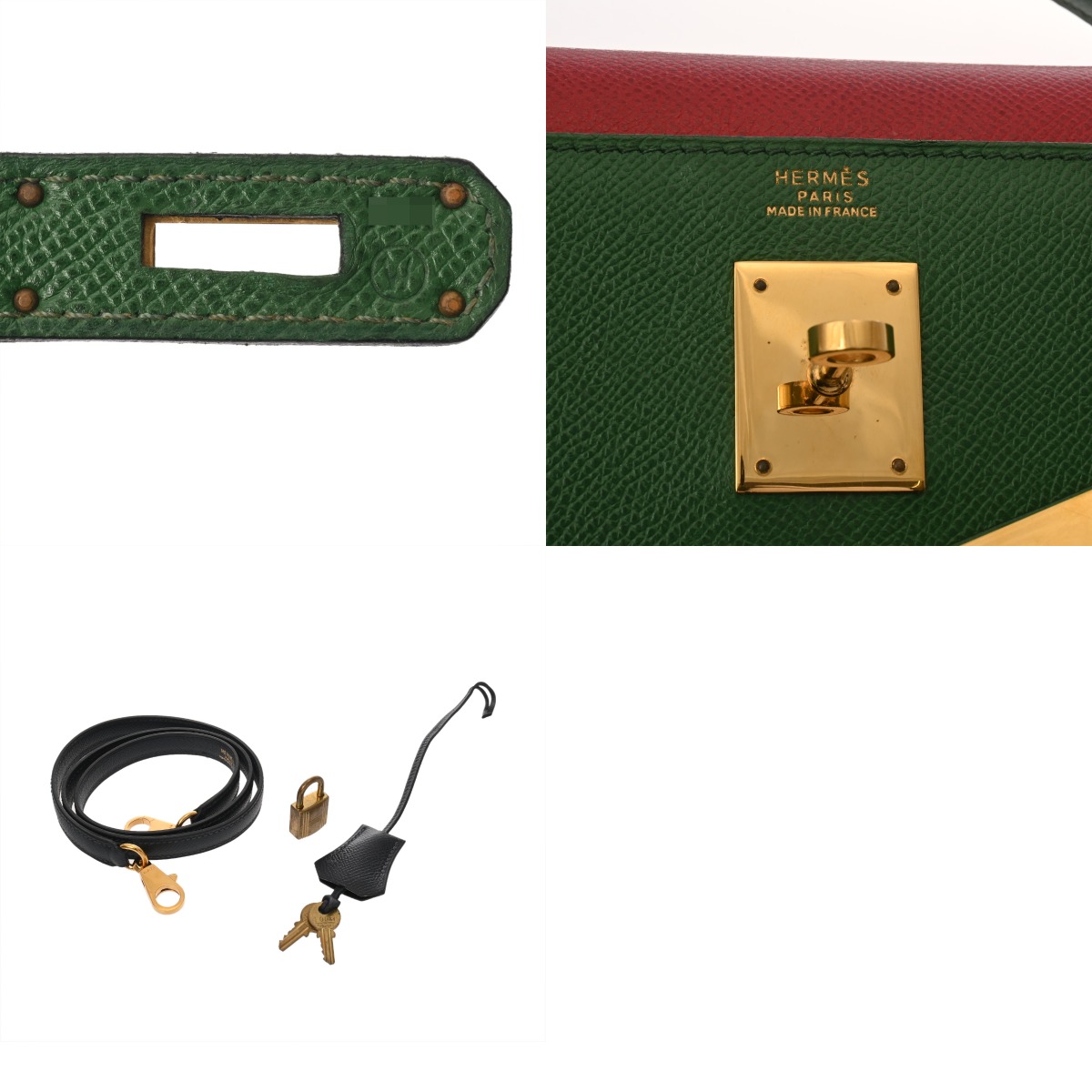 エルメス ケリー 32 外縫い ルージュヴィフ/ヴェール/ブルーインディゴ クシュベル レディース バッグ 【中古】【bag】