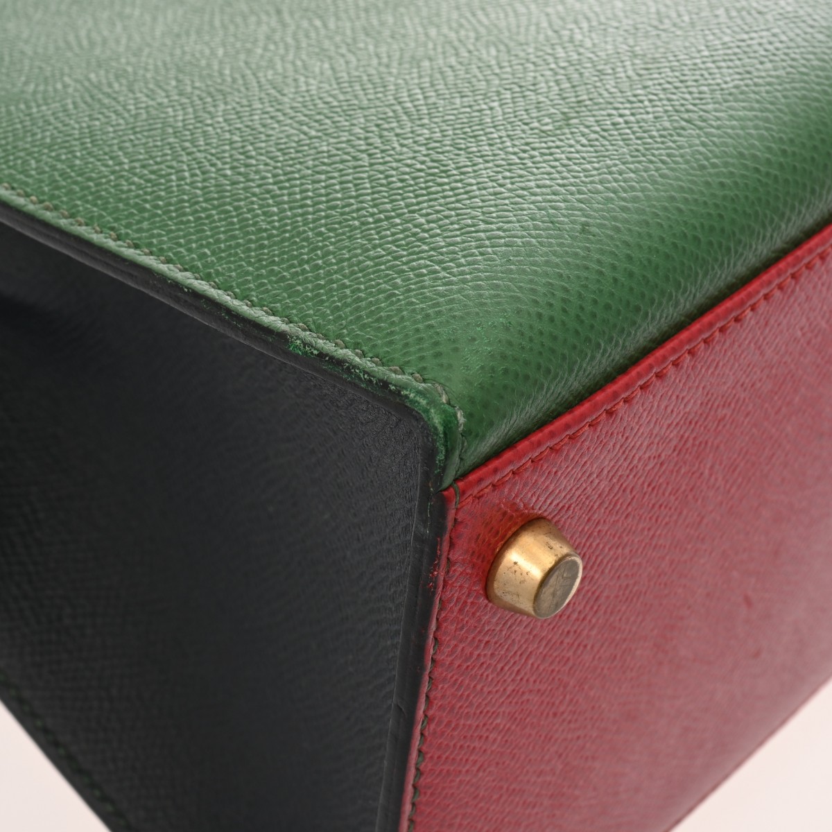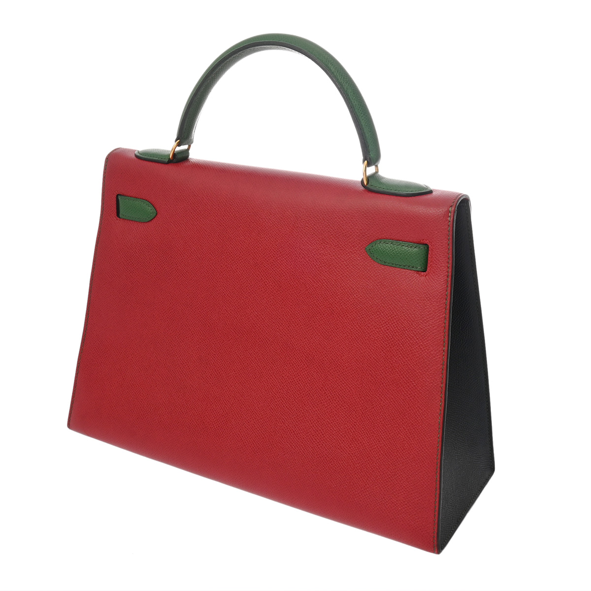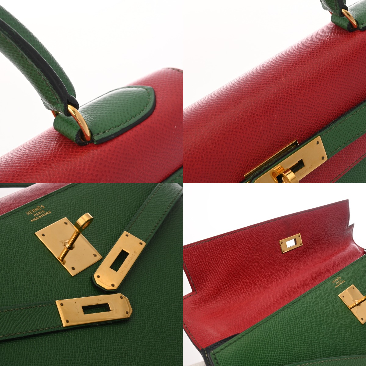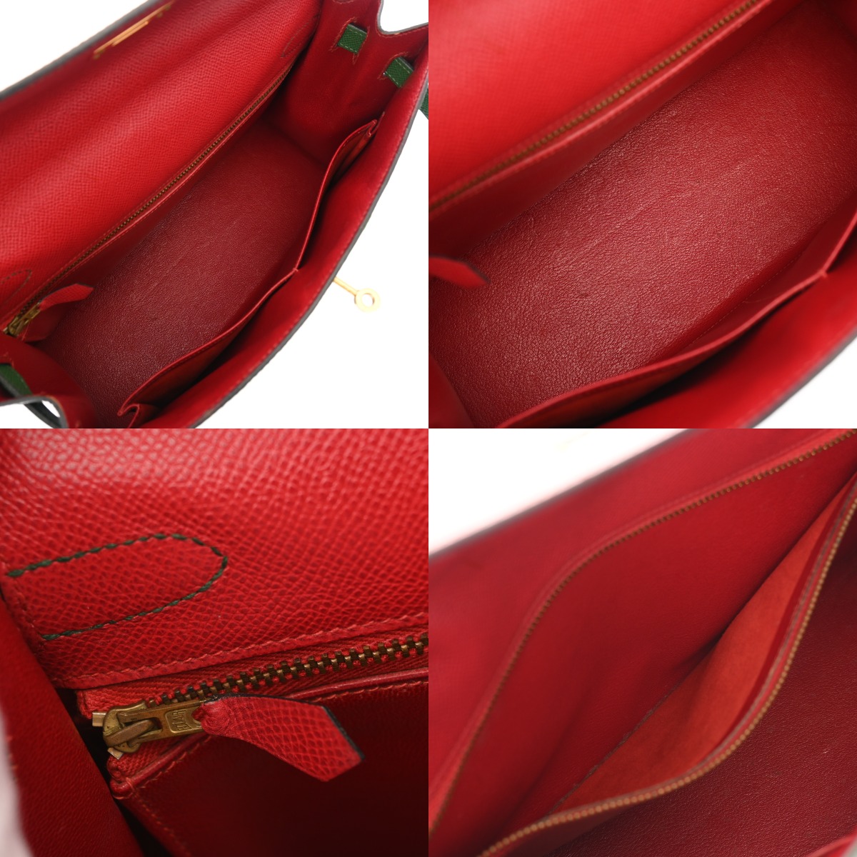 エルメス ケリー 32 外縫い ルージュヴィフ/ヴェール/ブルーインディゴ クシュベル レディース バッグ 【中古】【bag】