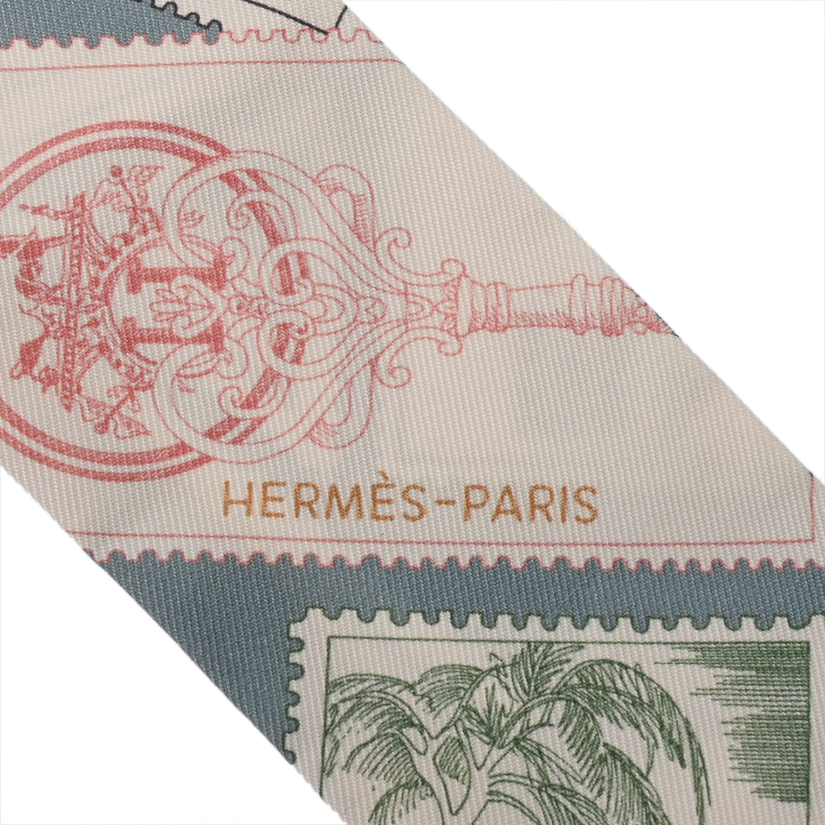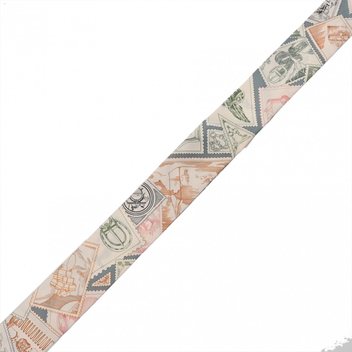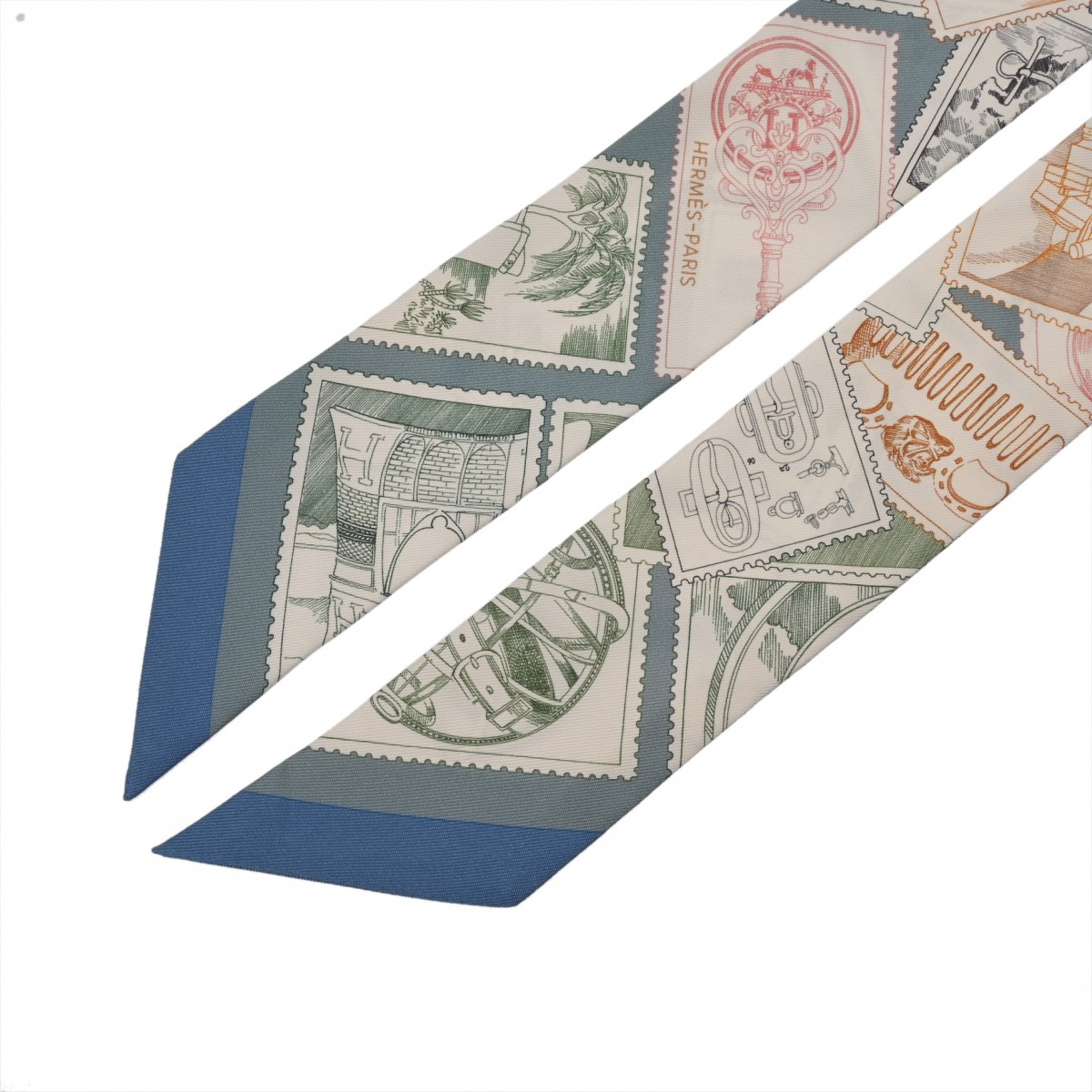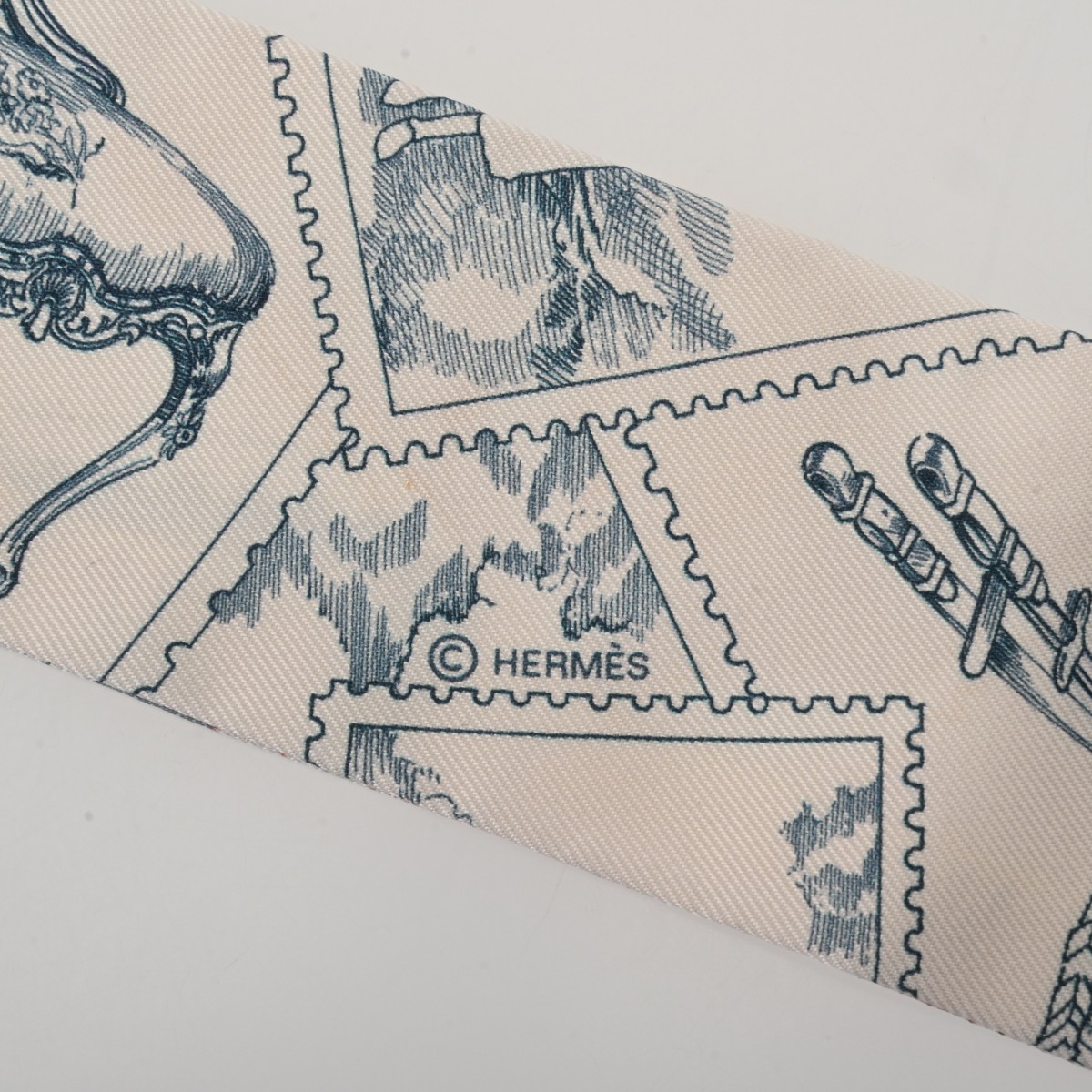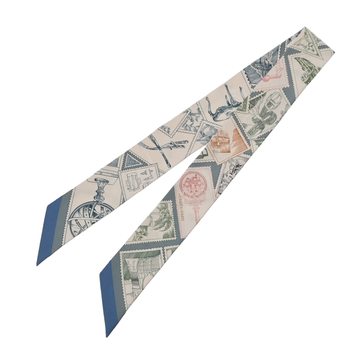 エルメス ツイリー LE PHILATELISTE DU FAUBOURG ホワイト/ブルーグレー系/マルチカラー シルク100% レディース 【未使用】【other】
