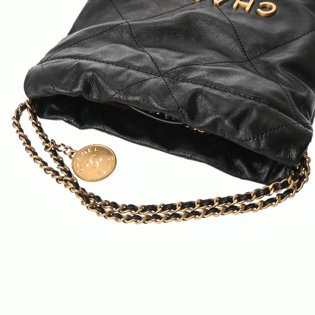 シャネル ミニ ハンドバッグ CHANEL22 ブラック AS3980 シャイニーカーフスキン レディース バッグ 【中古】【bag】