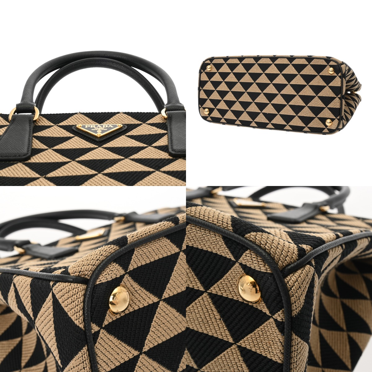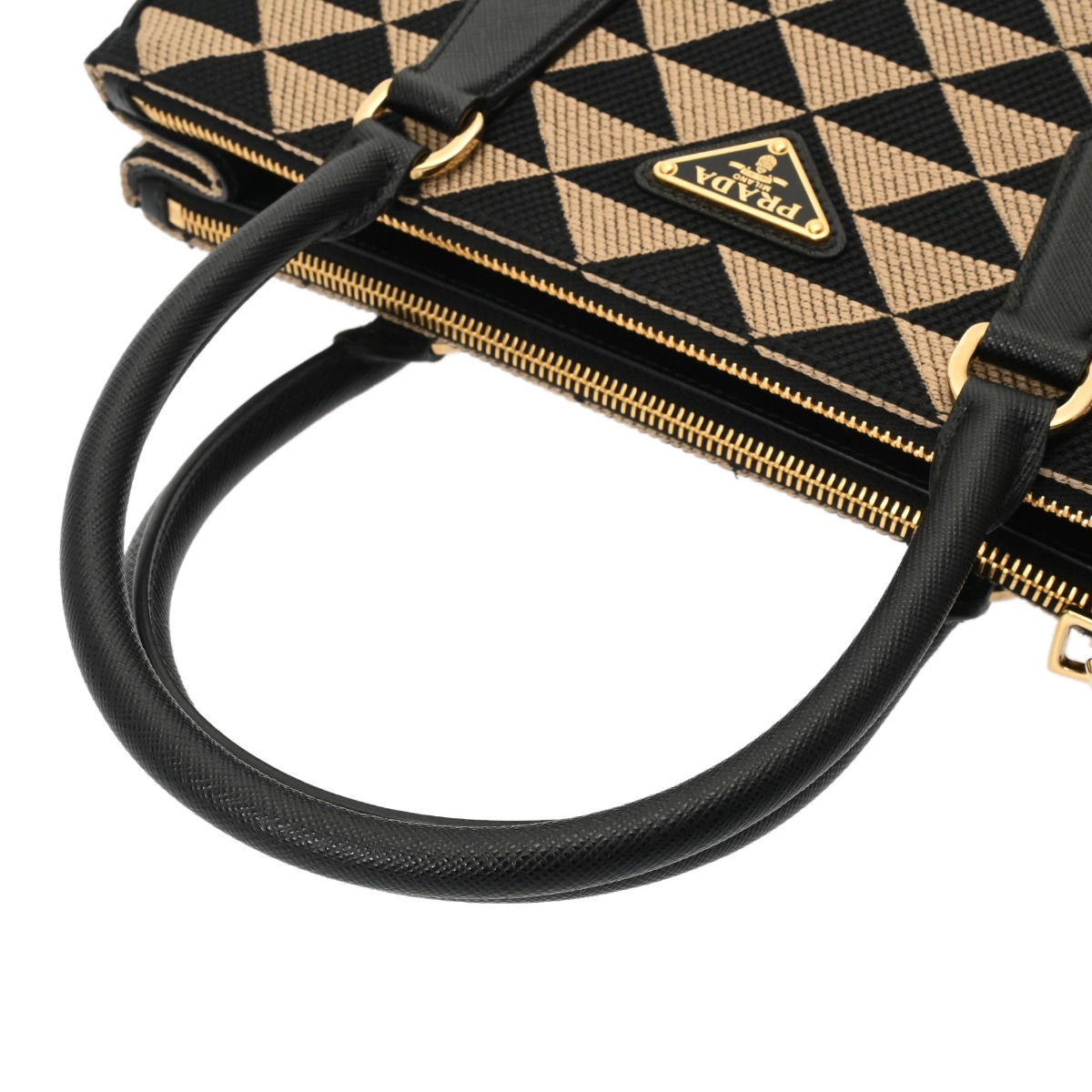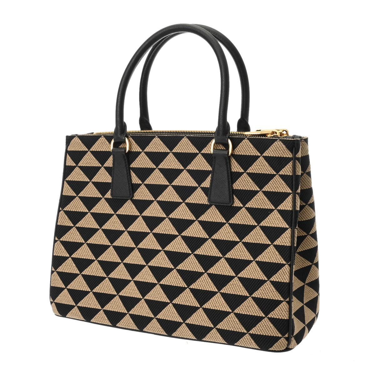 プラダ ガレリア ラージバッグ 2WAY ベージュ/ブラック 1BA274 トライアングルジャガードキャンバス/サフィアーノレザー レディース バッグ 【中古】【bag】
