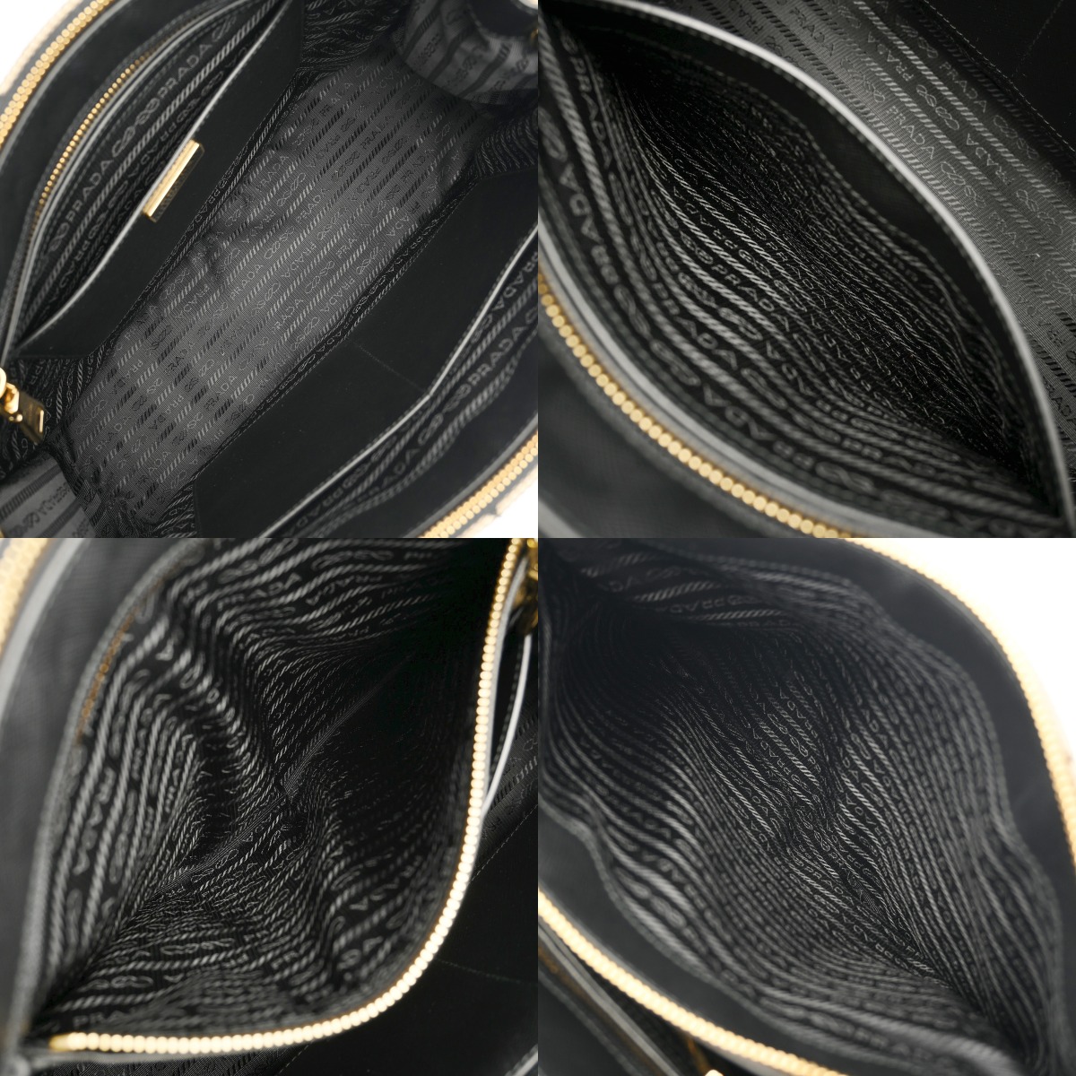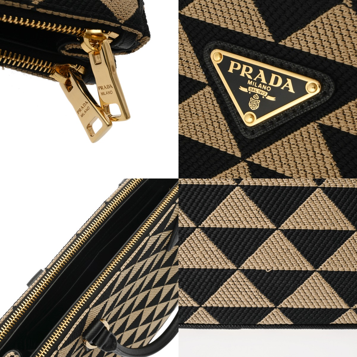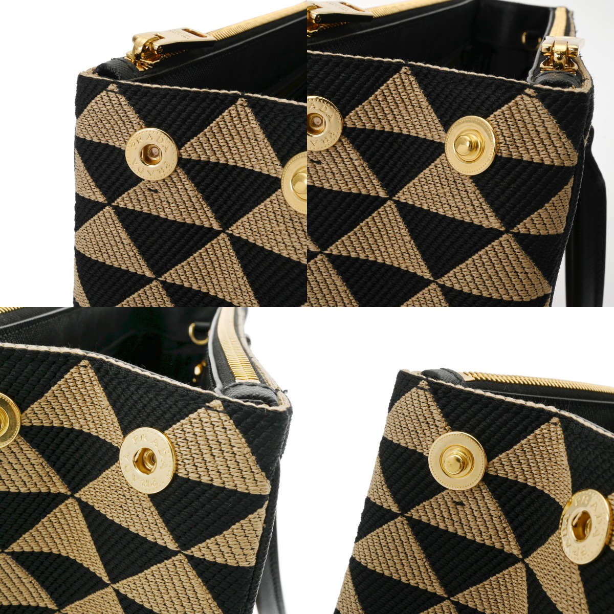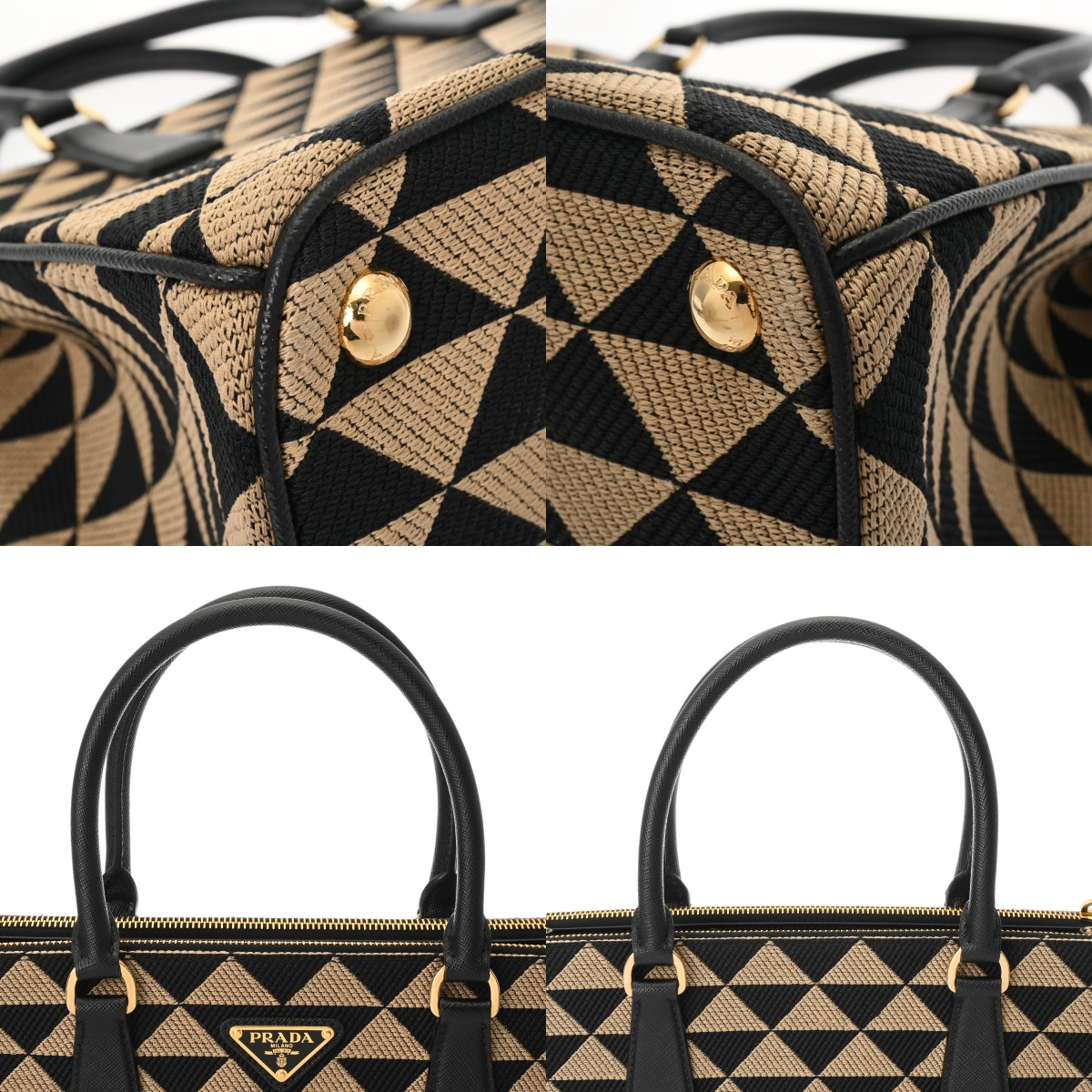 プラダ ガレリア ラージバッグ 2WAY ベージュ/ブラック 1BA274 トライアングルジャガードキャンバス/サフィアーノレザー レディース バッグ 【中古】【bag】